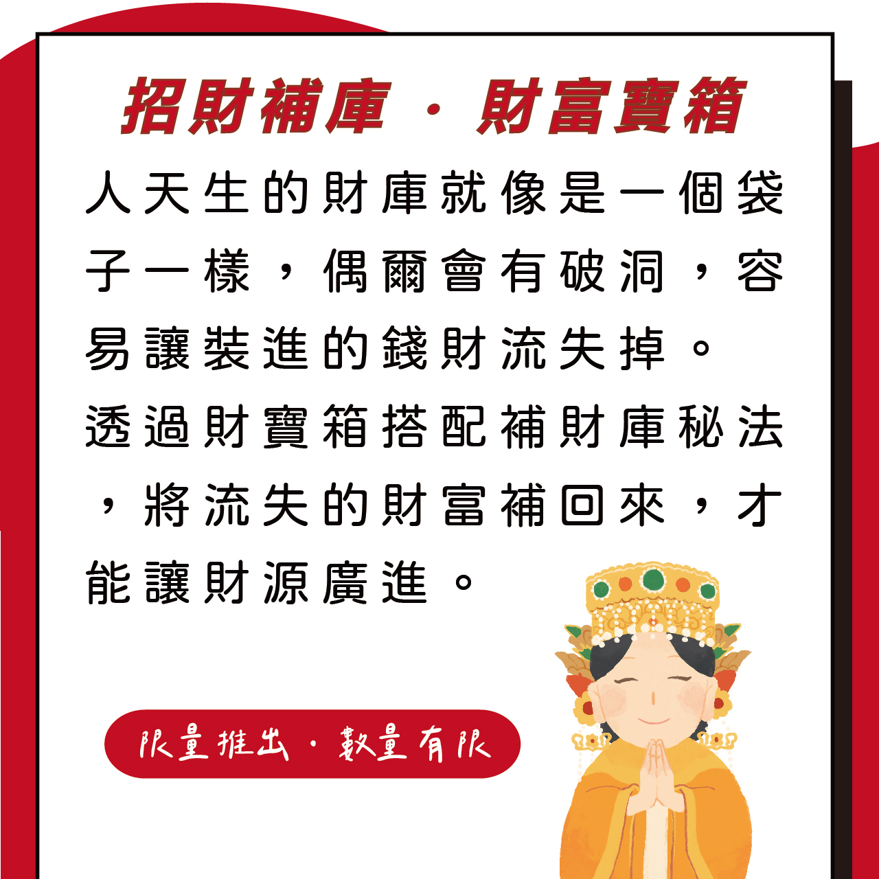透過財寶箱搭配補財庫秘法,將流失的財富補回來