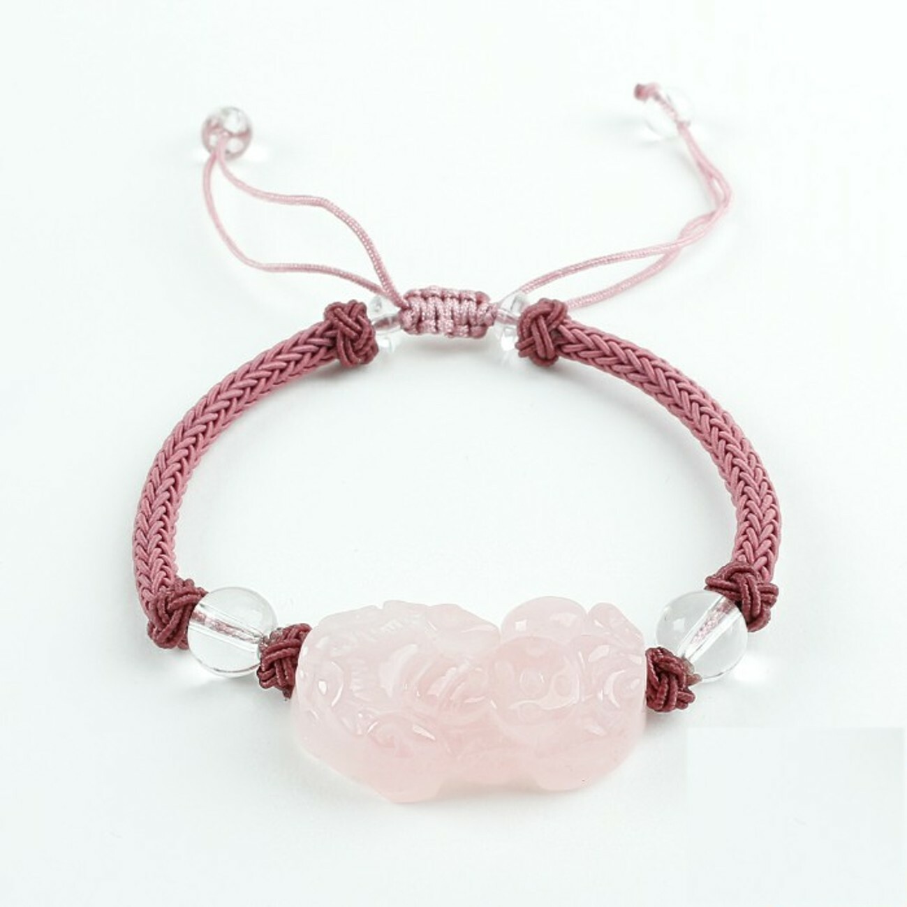 【風水好好玩】粉晶貔貅中國繩手鍊 (招貴人/好姻緣/招桃花)