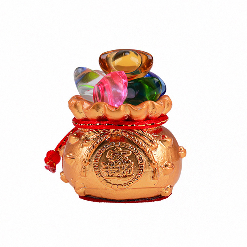 以金吸財,象徵著豐盛的財富和好運,並在旁有一個聚寶盆,上方有五行小元寶,象徵五路財庫皆進財