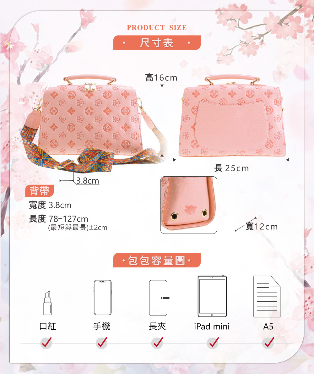 單品尺寸:包包-約25.5*16*12.5±2cm