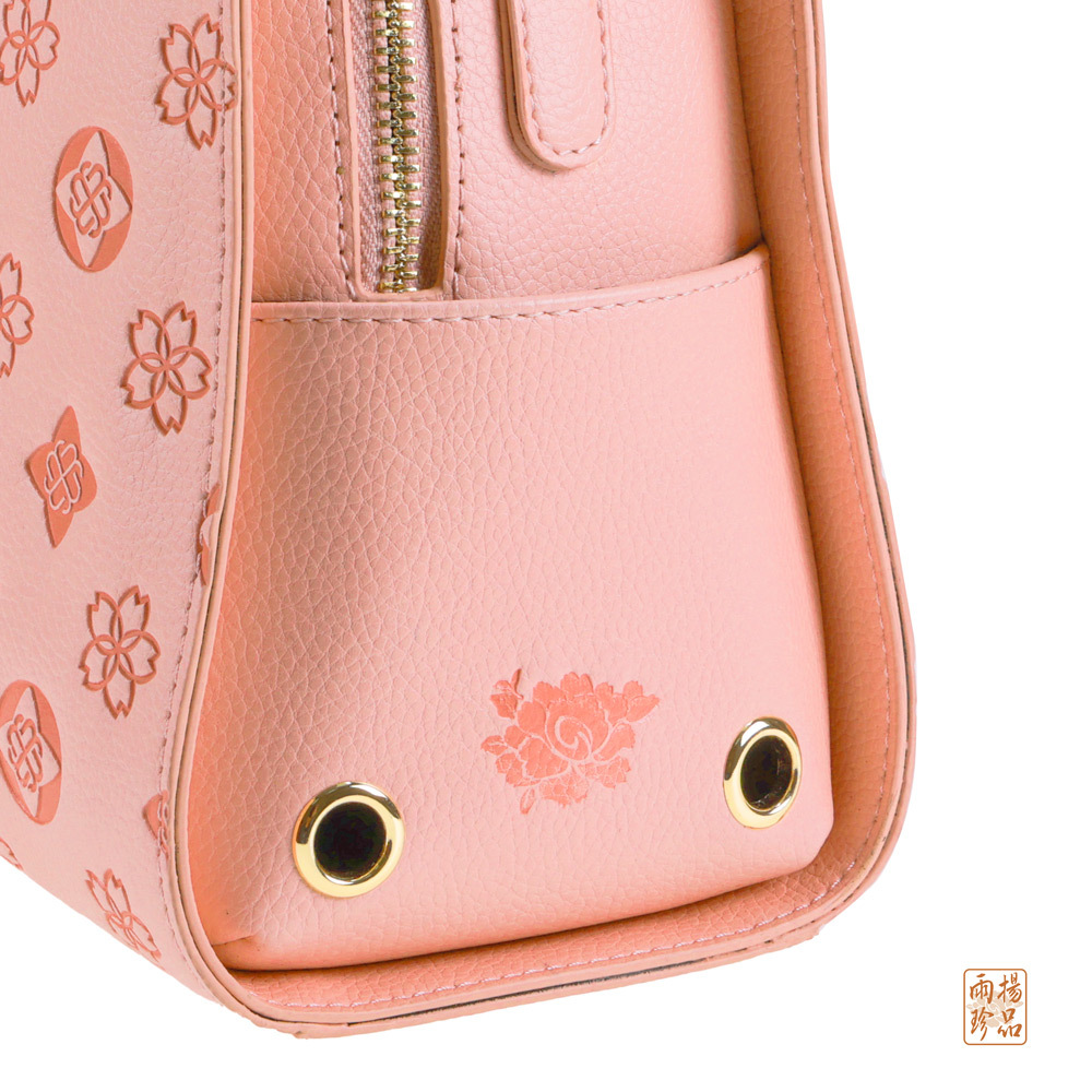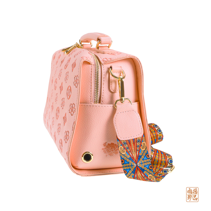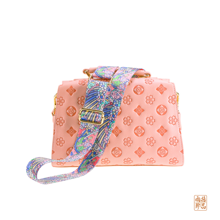揹帶上點綴著形似孔雀的幾何圖騰,象徵吉祥好運降臨,讓您在姻緣、職場及人際方面都有雀屏中選的幸運