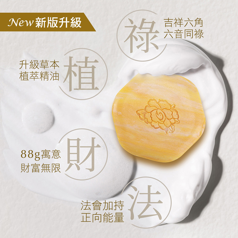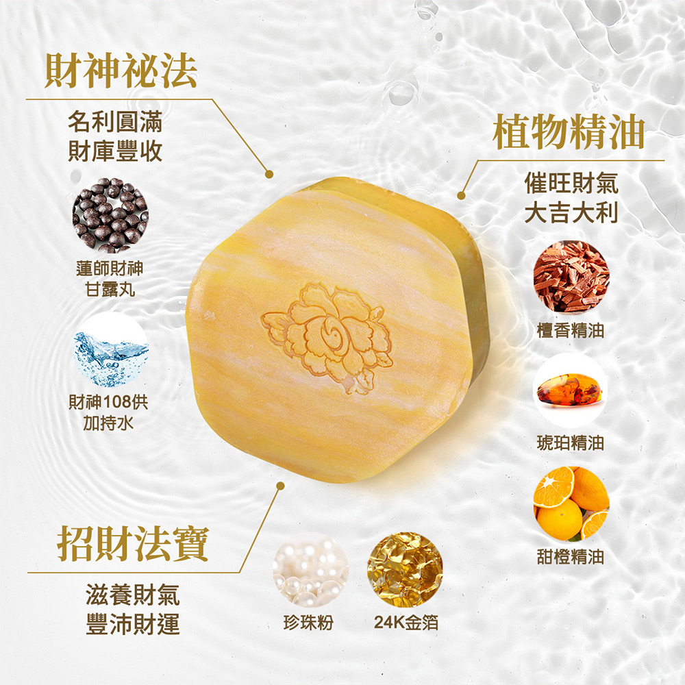 更將香氛改為精油,使用金磚皂時不只是啟動招財能量,還能透過精油功效舒緩穩定心神、滋潤肌膚,加強旺財磁場!