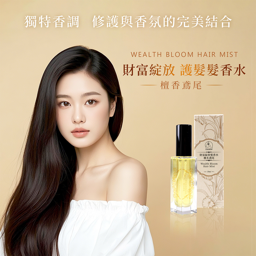 使用「財富綻放檀香鳶尾髮香水」,有助改善頭髮異味,減少靜電,增加潤澤,
