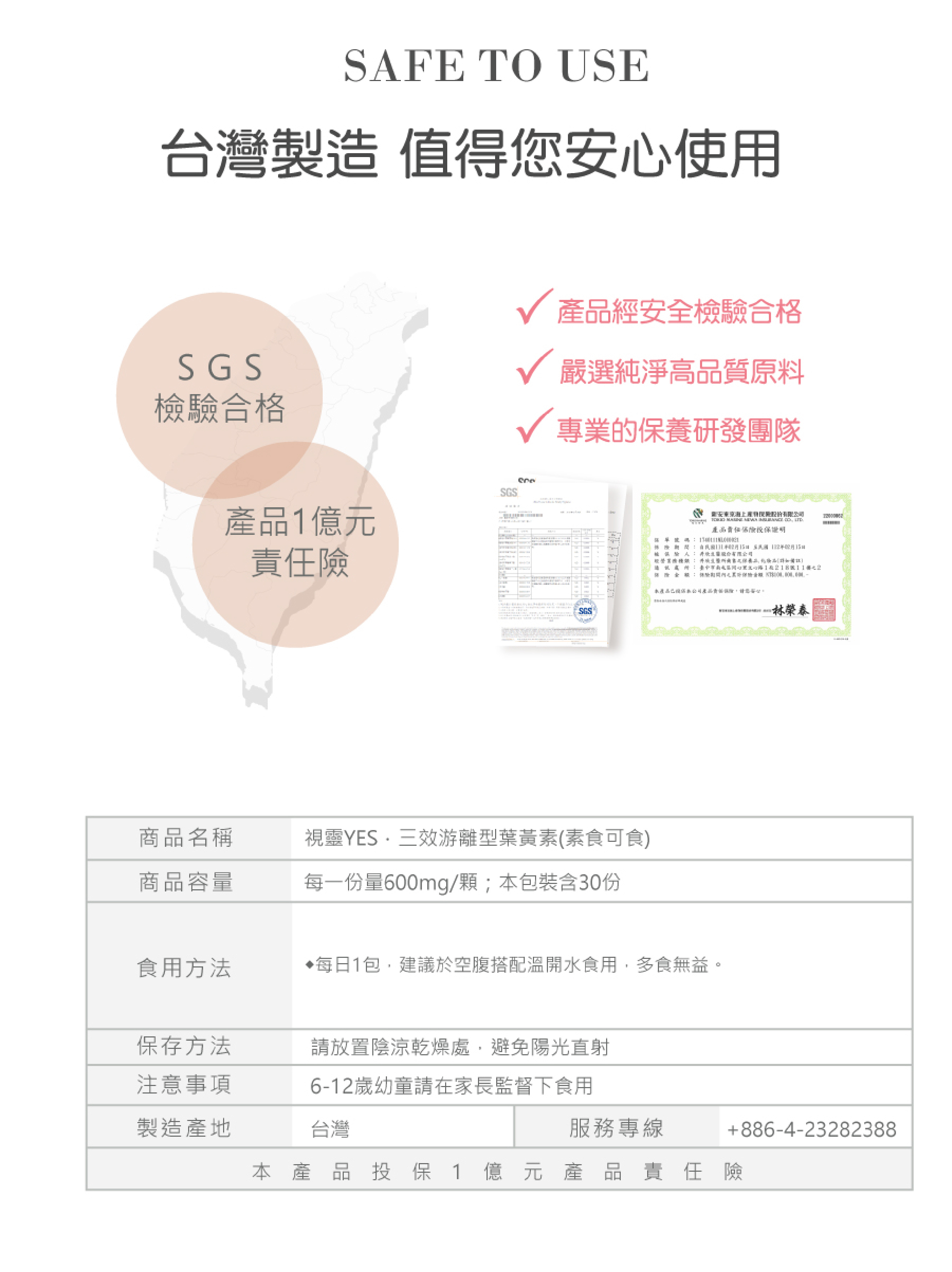 【AQUA C.花漾皙】視靈YES·三效游離型葉黃素 (廠商直出、不參加免運及滿額贈優惠)