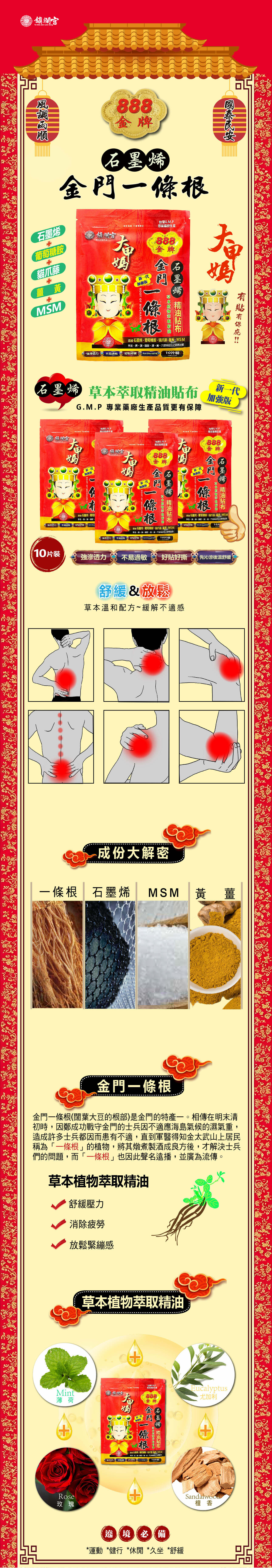 【金牌888】石墨烯金門一條根精油貼布