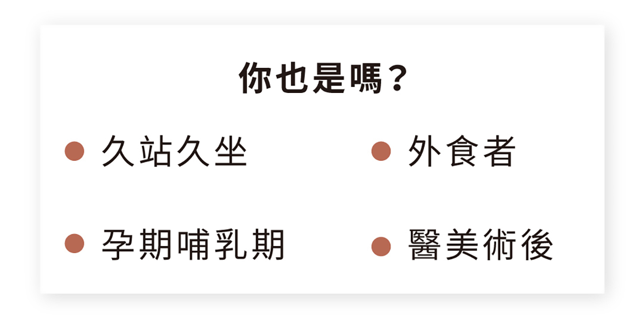 📍誰需要:久坐上班族、重口味飲食者常有水腫、循環差、代謝慢等問題。