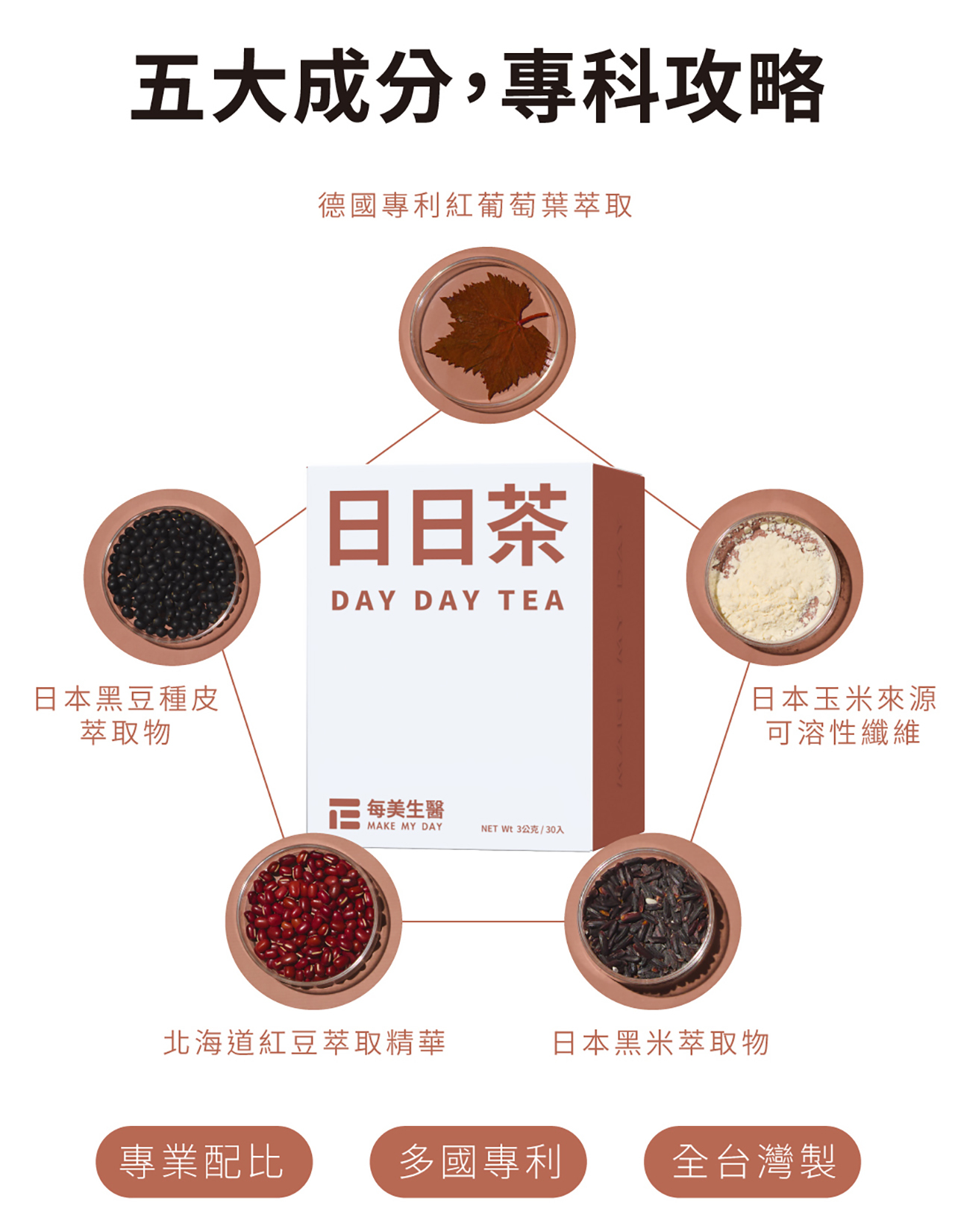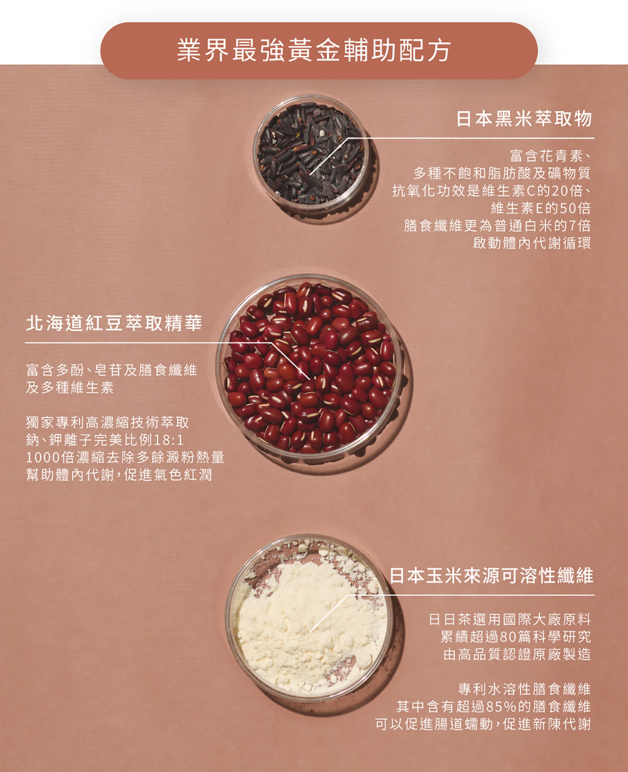 德國專利紅葡萄葉+日本專利黑豆種皮+日本紅豆+黑米+可溶性纖維,促進新陳代謝