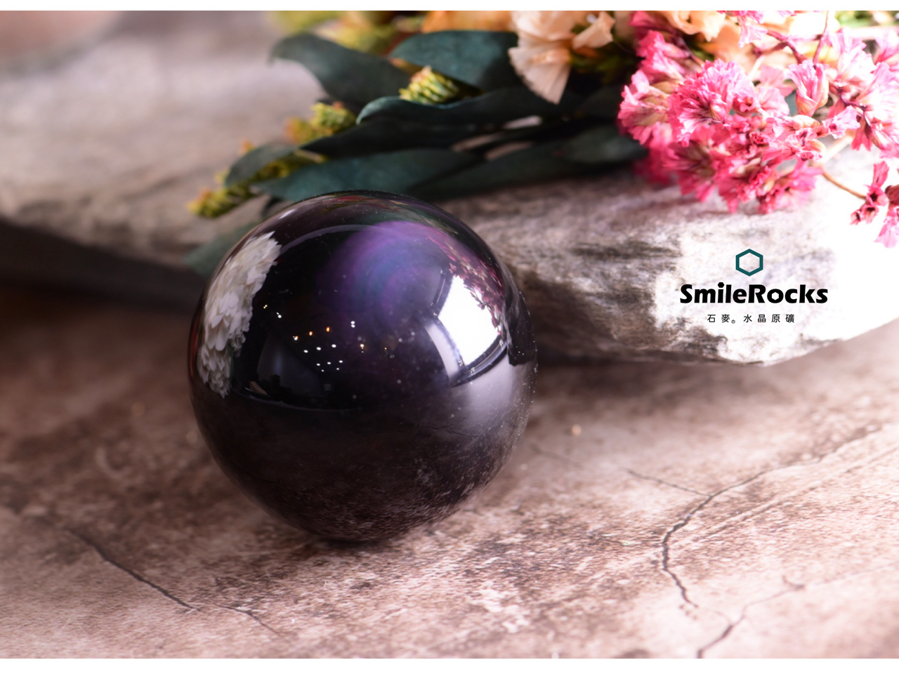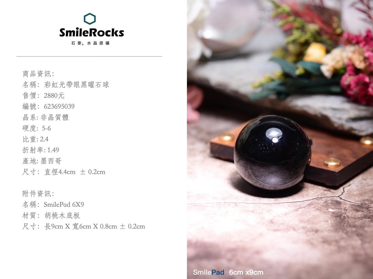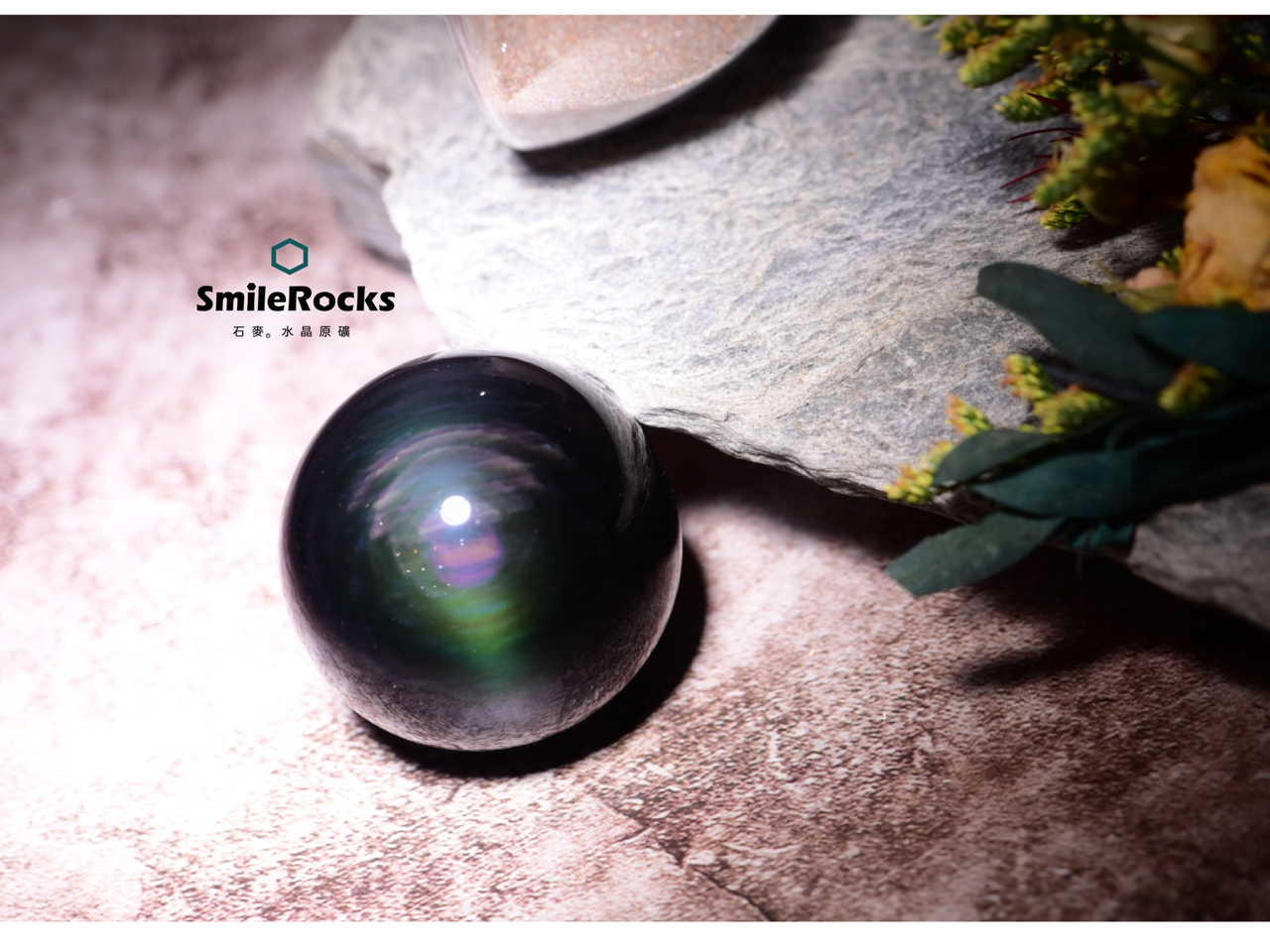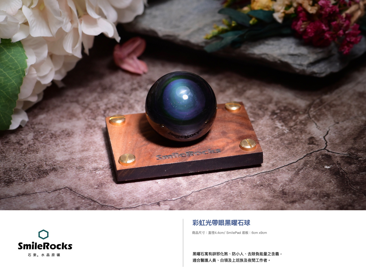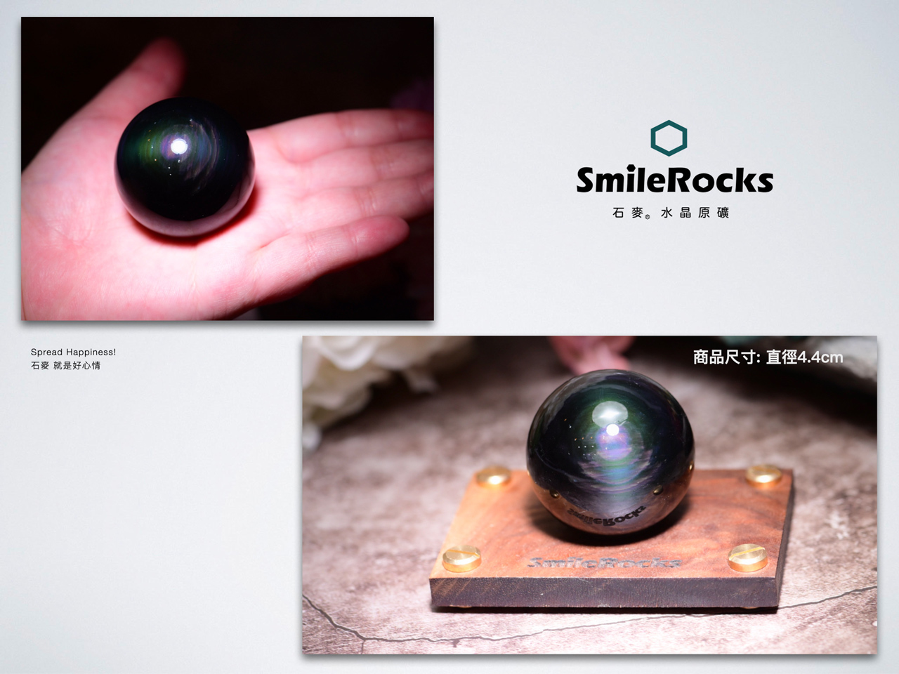【石麥SmileRocks】彩虹光帶眼黑曜石球 直徑4.4cm