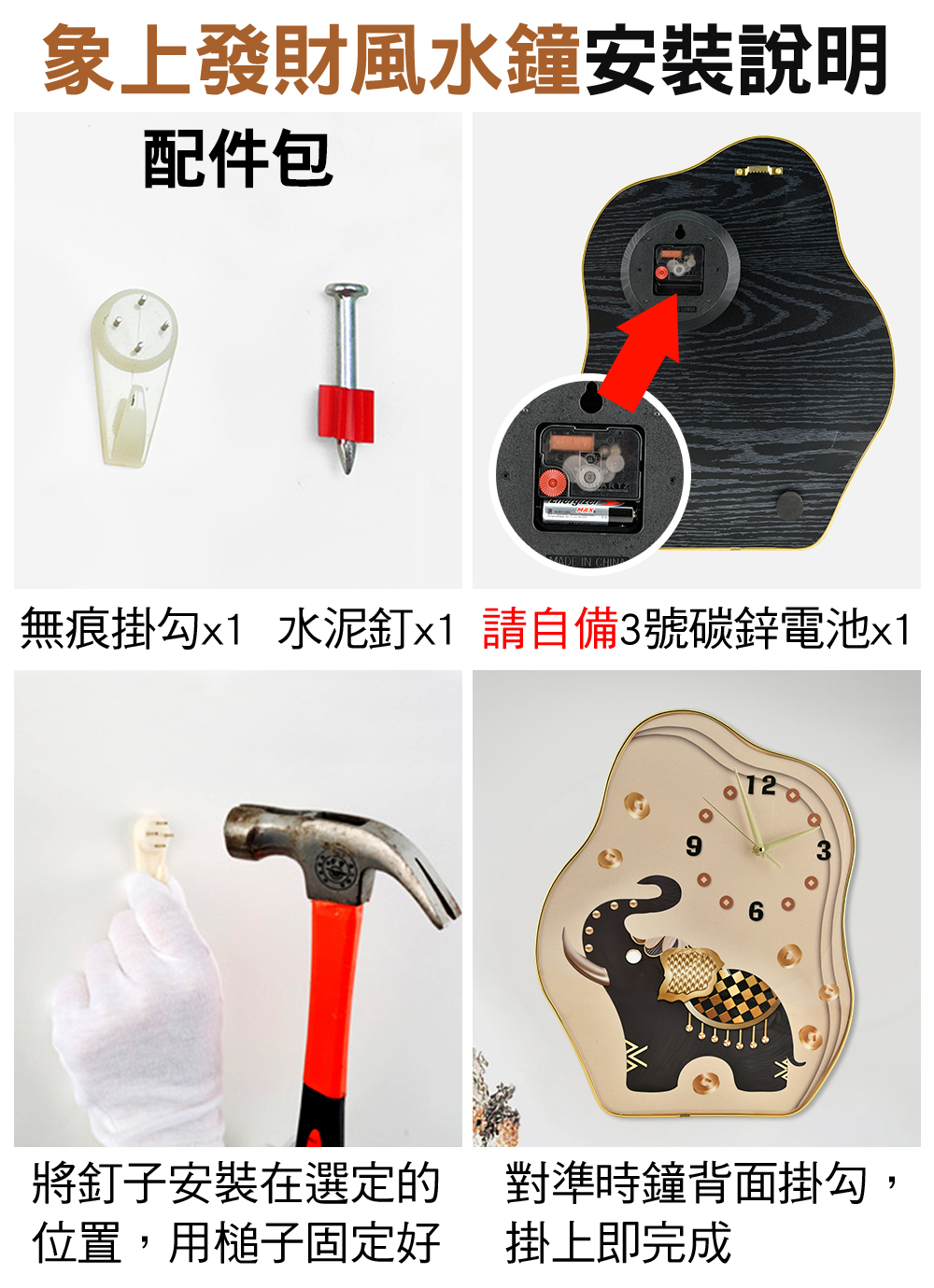 【命運好好玩】象上發財風水鐘 (廠商直出)