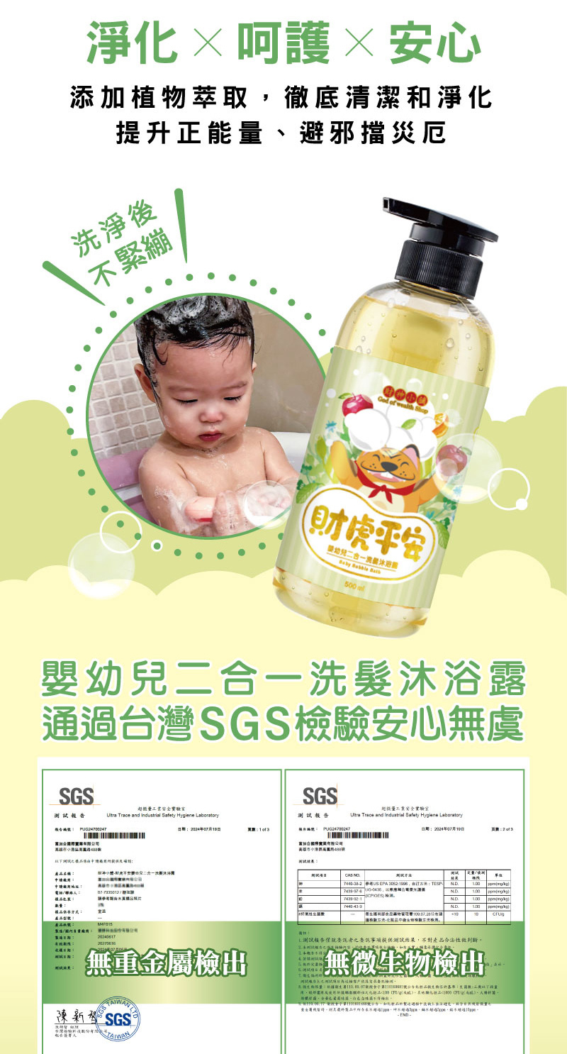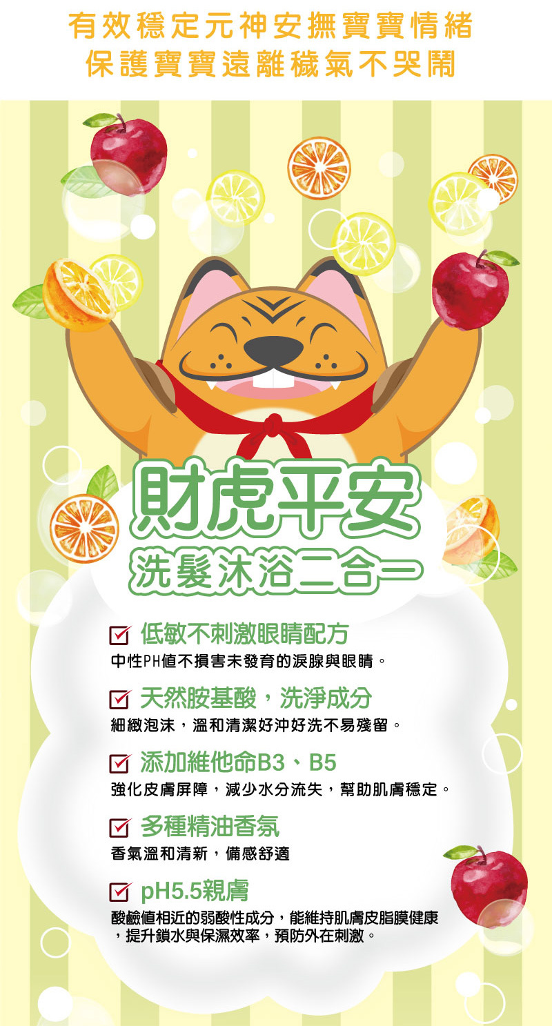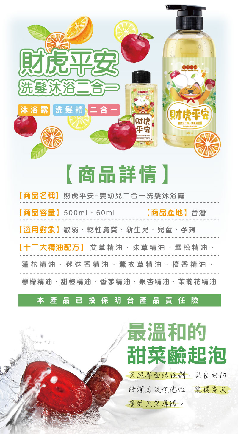 【財神小舖】財虎平安-嬰幼兒二合一洗髮沐浴露500ml/60ml (廠商直出、不參加免運及滿額贈優惠)