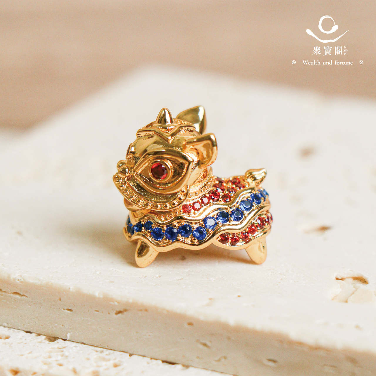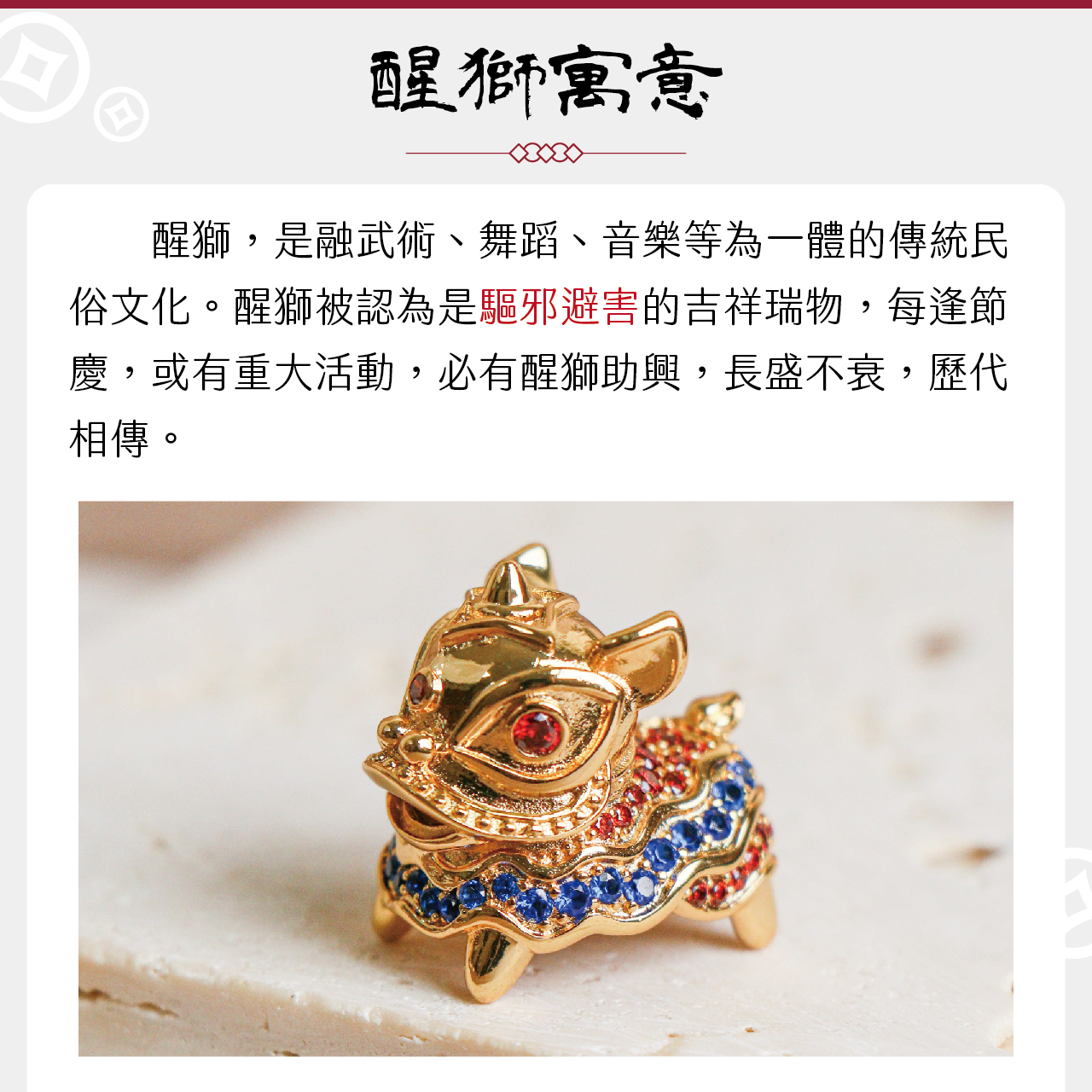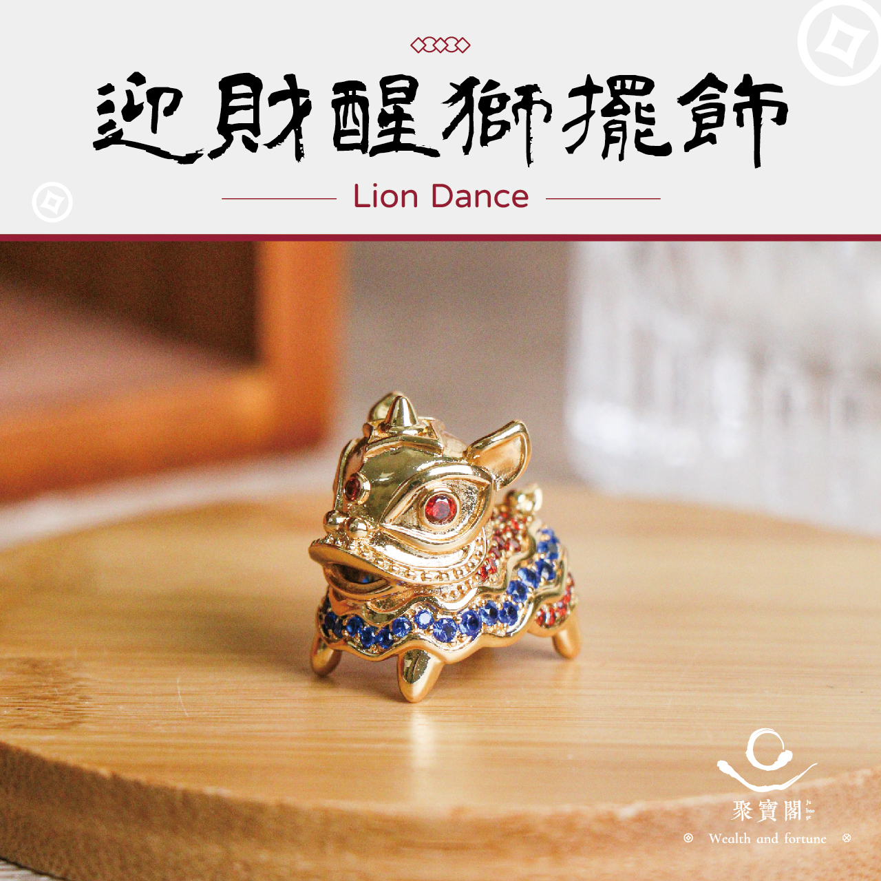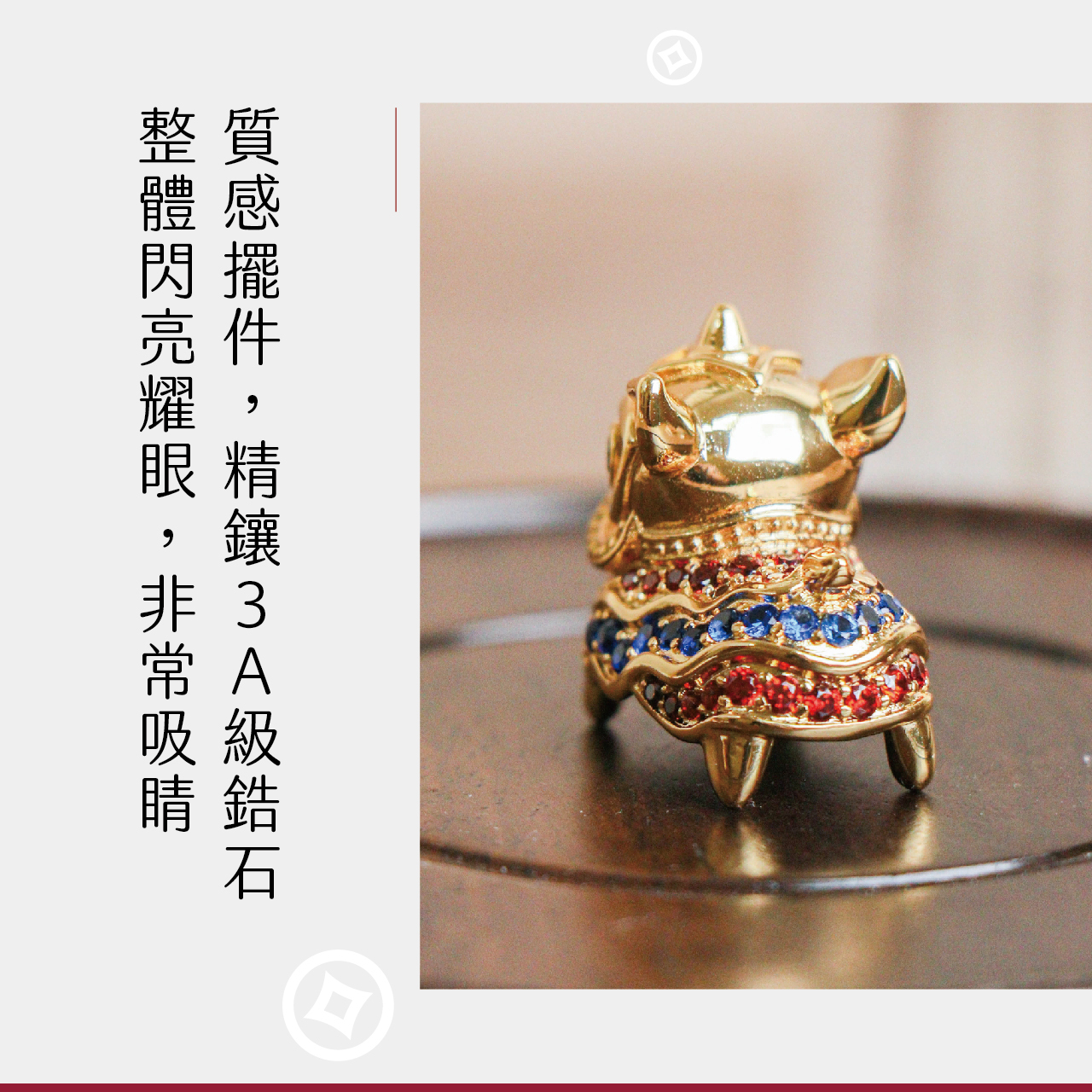 迎財醒獅擺飾-銅+黃K|擺件|舞獅|招財|吉祥物|鋯石【聚寶閣】