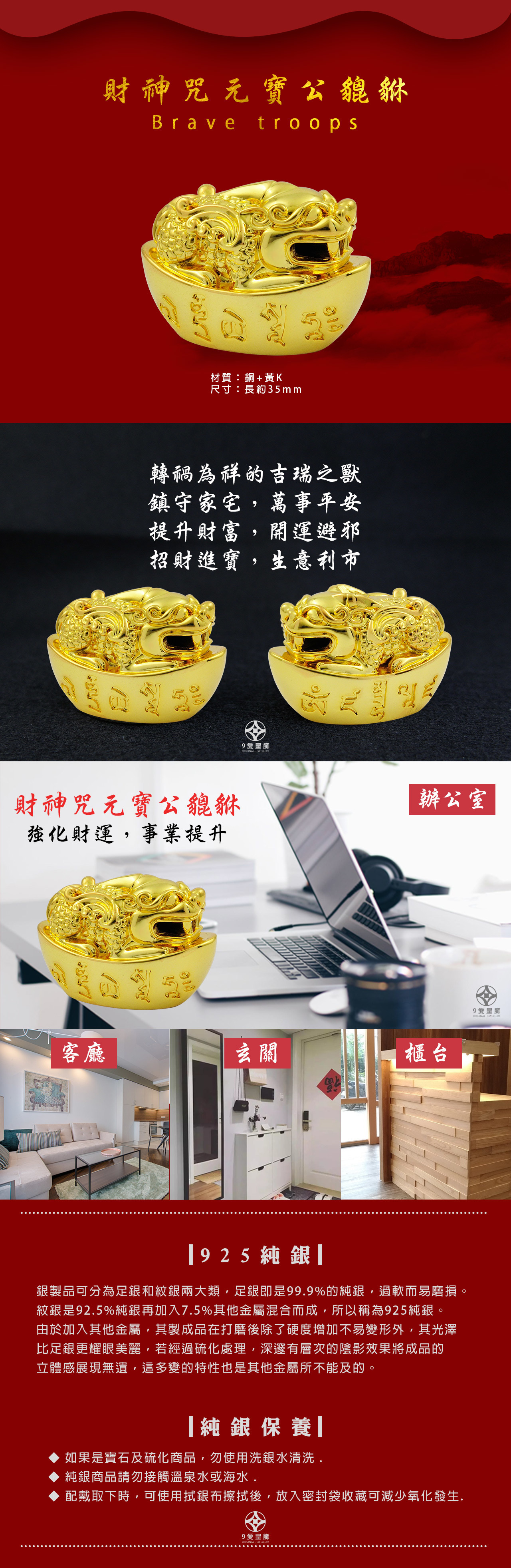 財神咒元寶(公貔貅)-銅+黃K