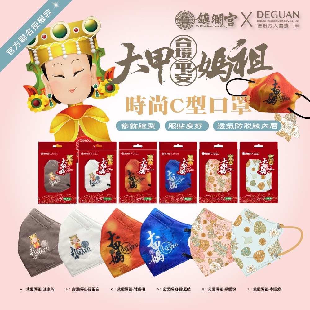 【鎮瀾宮×德冠】醫用口罩 - 我愛媽祖 - 橘 (C型) (10入)