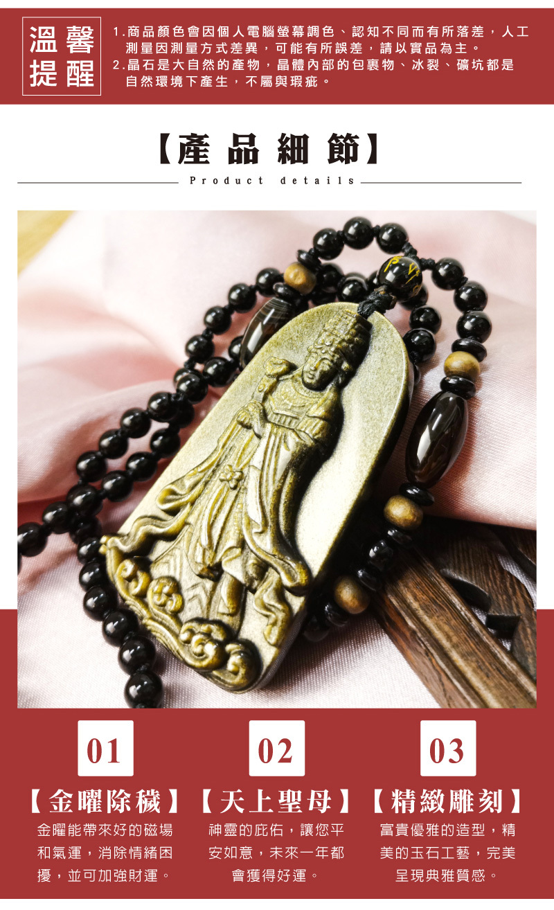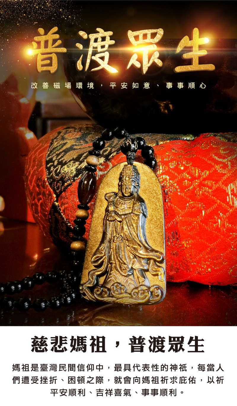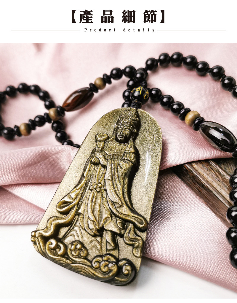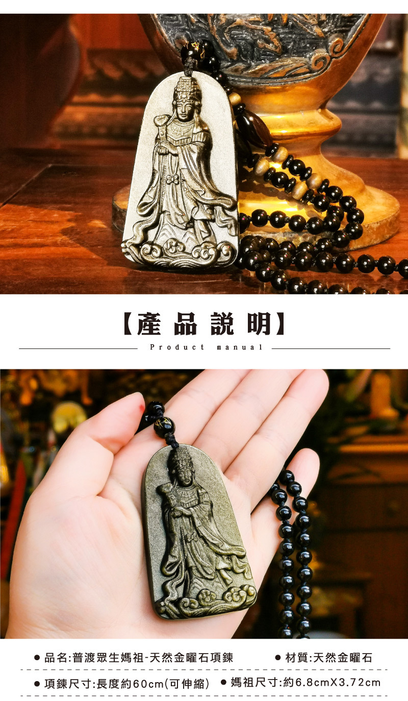 【財神小舖】普渡眾生媽祖-天然金曜石項鍊(典雅)(含開光)