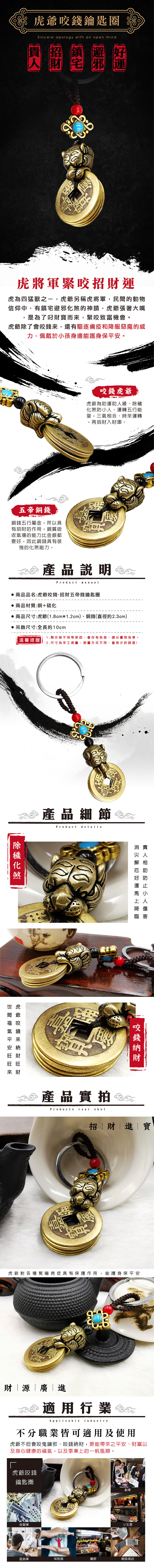 【財神小舖】虎爺咬錢-招財五帝錢鑰匙圈(含開光)
