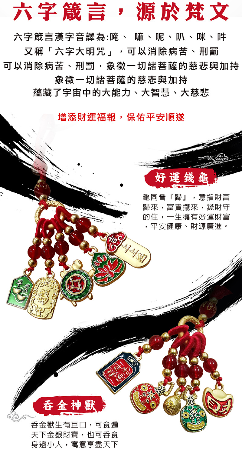 【財神小舖】六字箴言-開運五福鑰匙圈-2款任選 (含開光)