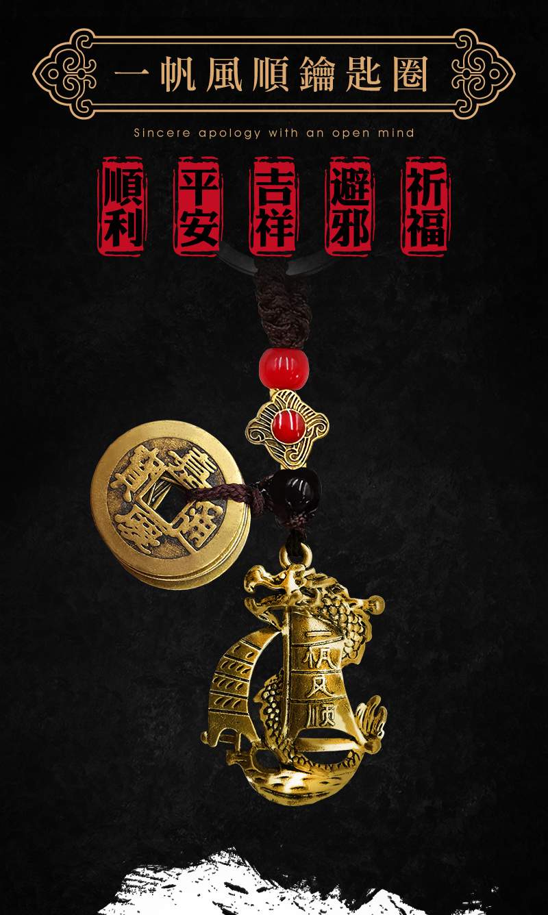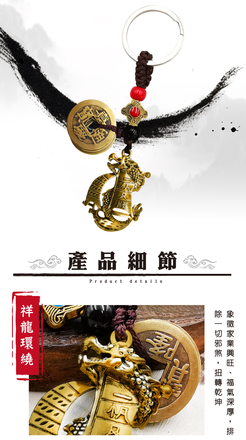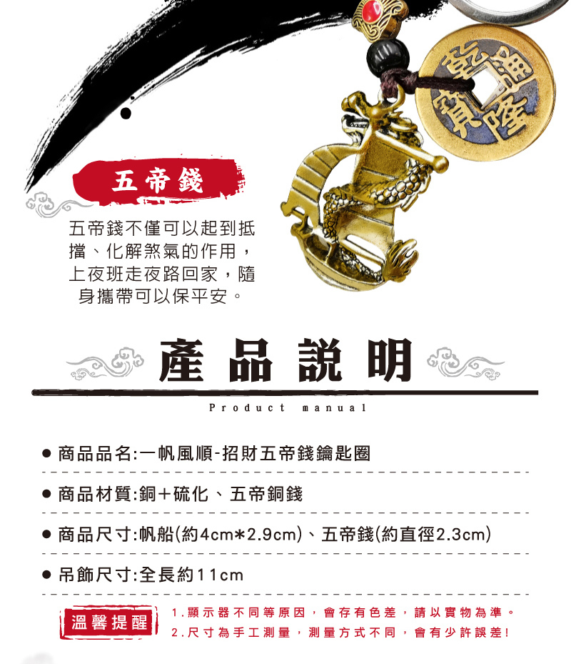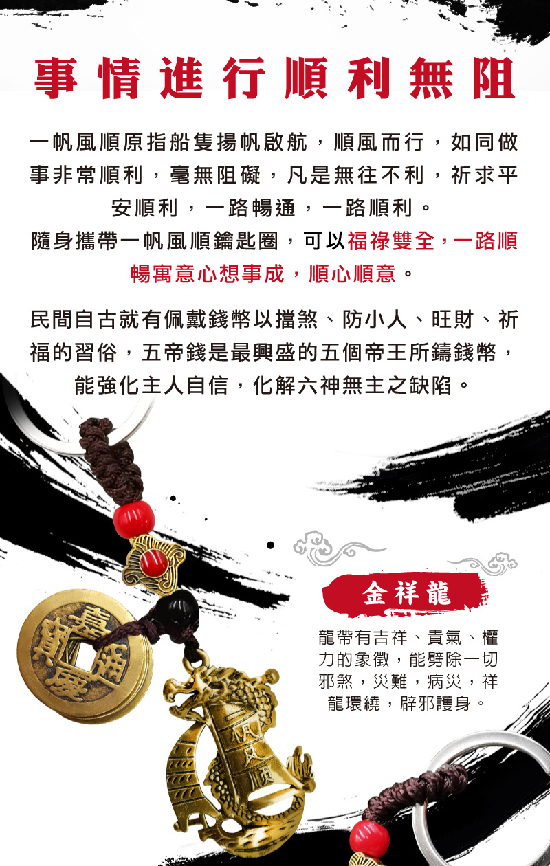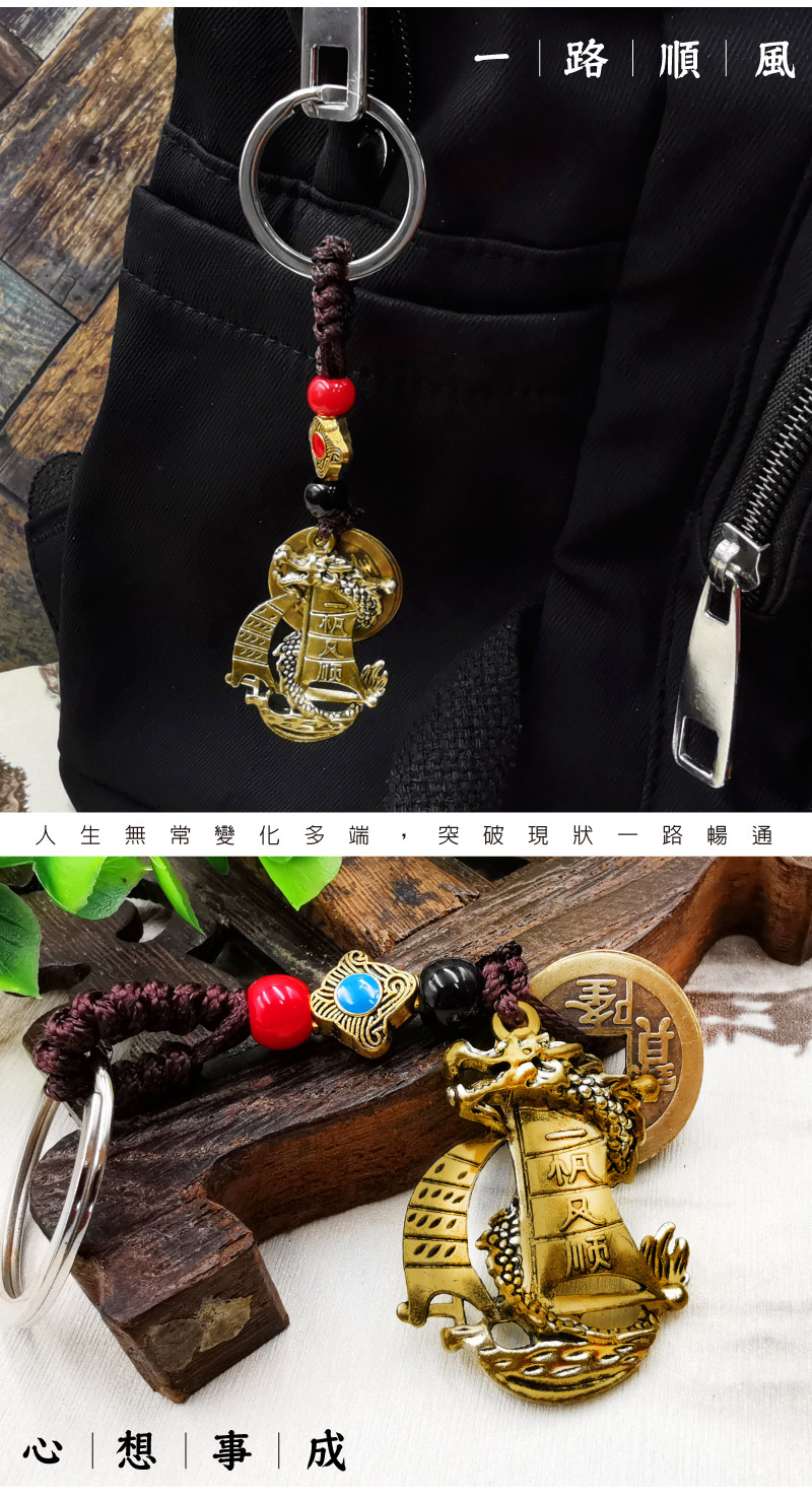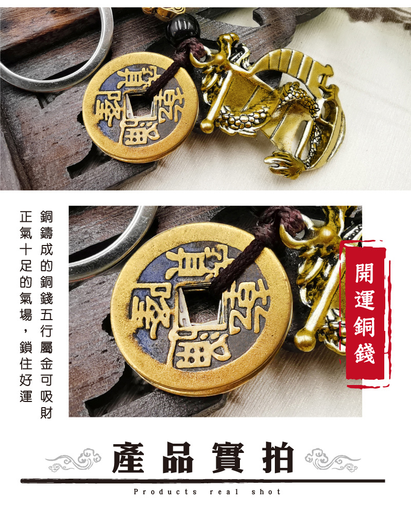 【財神小舖】一帆風順-招財五帝錢鑰匙圈 (含開光)