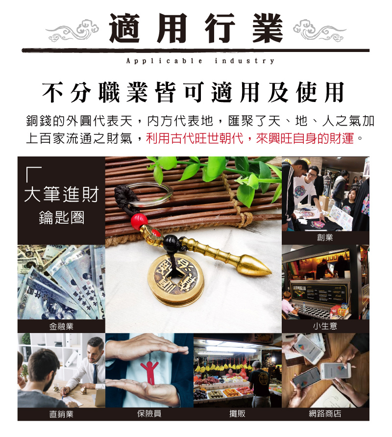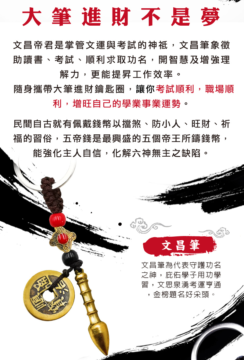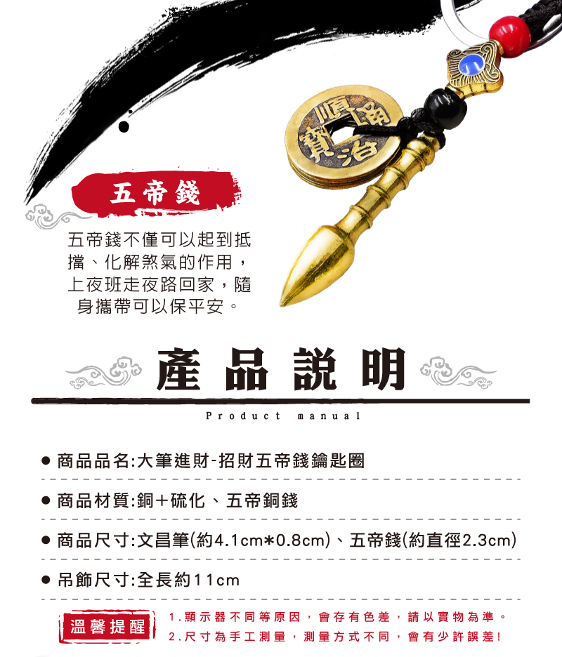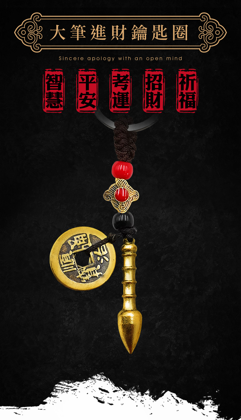 【財神小舖】大筆進財-招財五帝錢鑰匙圈 (含開光)