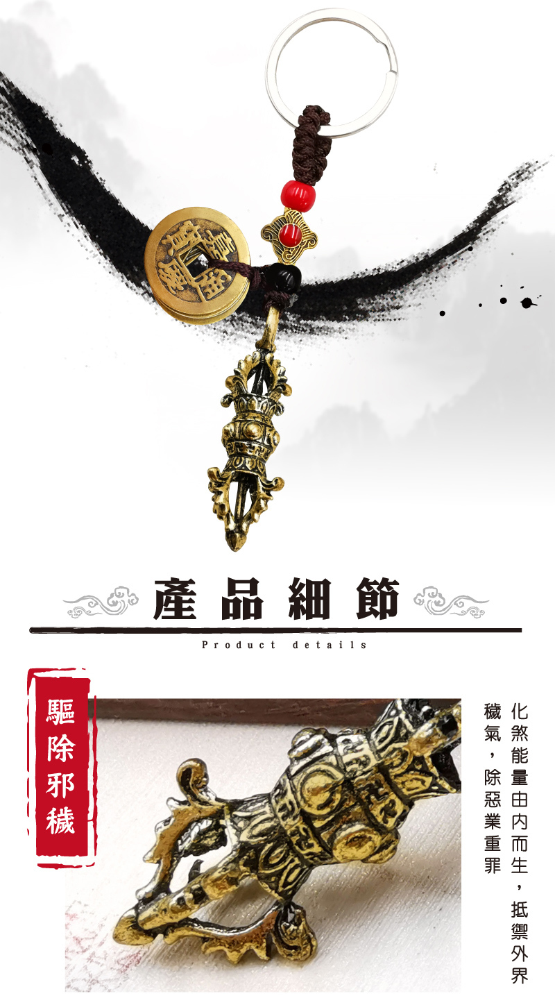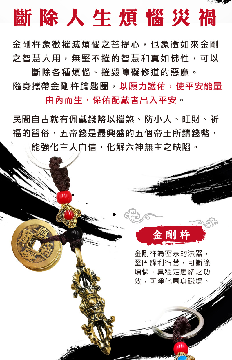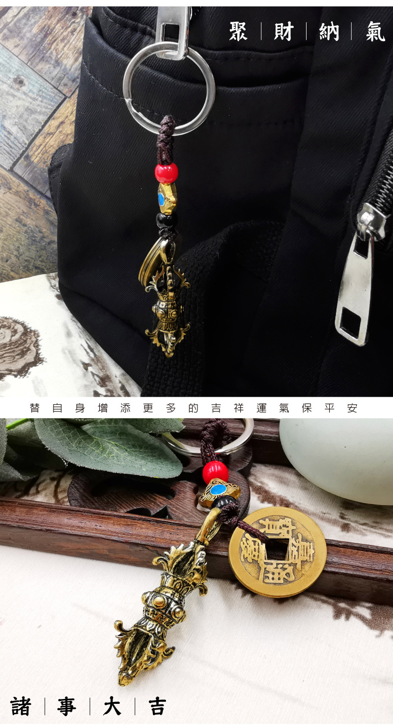 【財神小舖】金剛杵-招財五帝錢鑰匙圈 (含開光)
