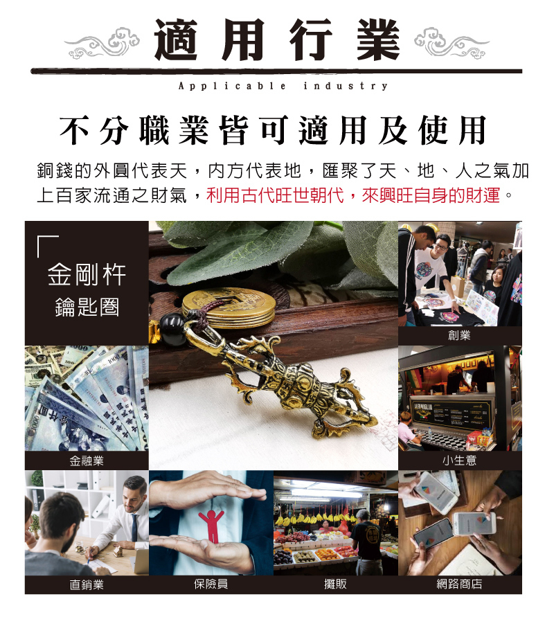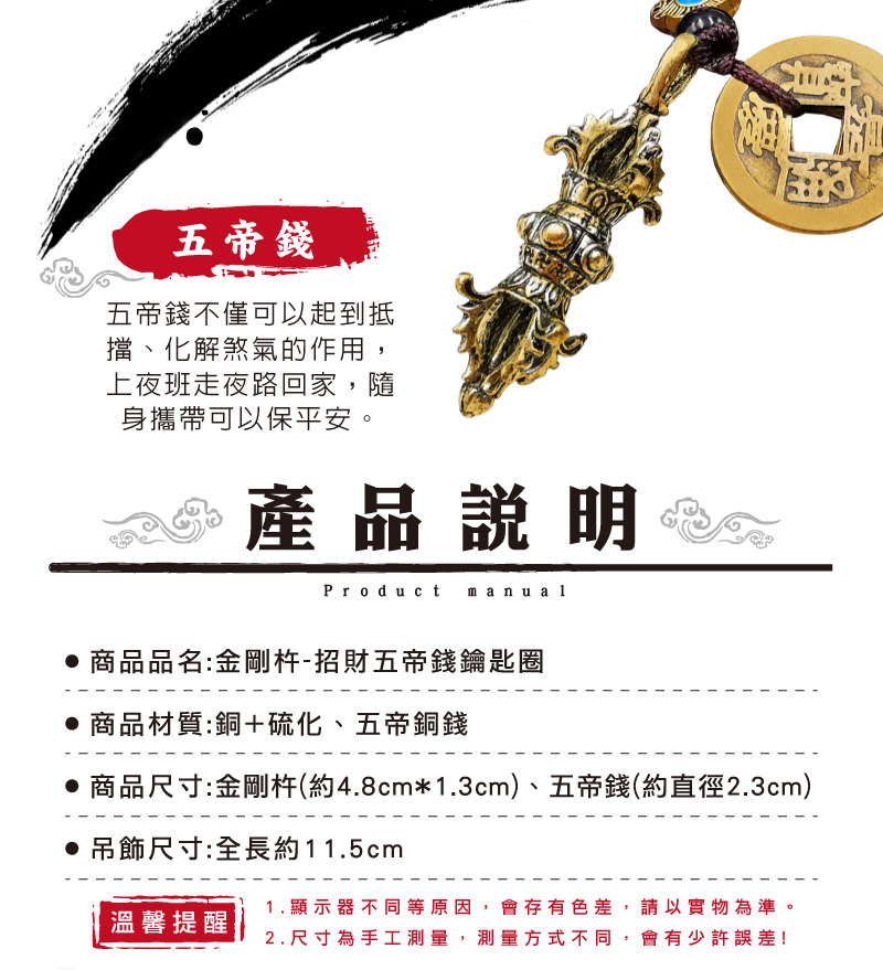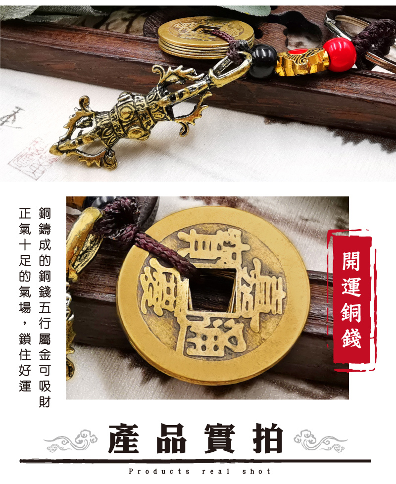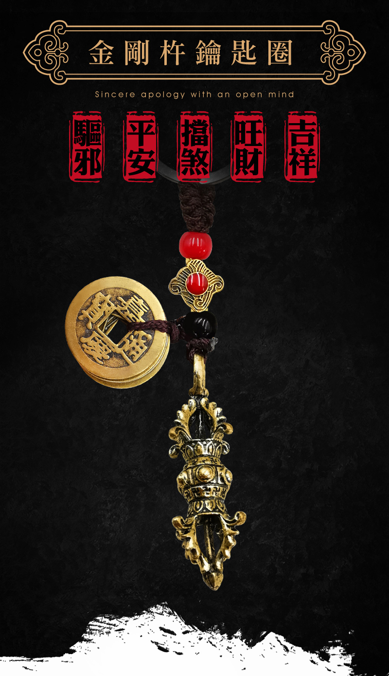 【財神小舖】金剛杵-招財五帝錢鑰匙圈 (含開光)