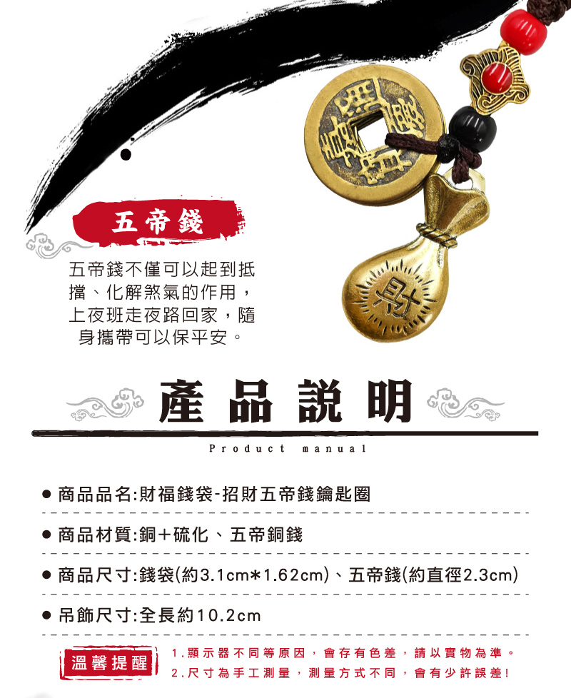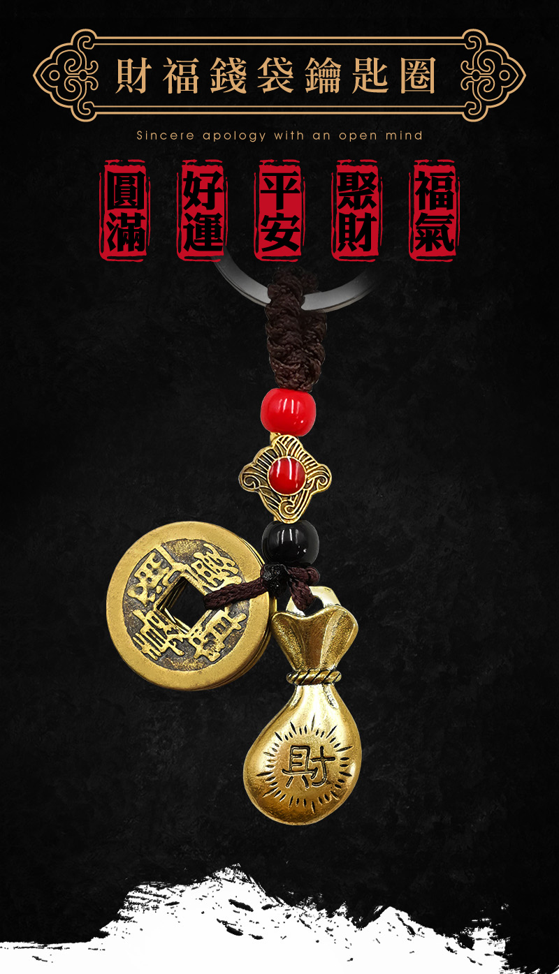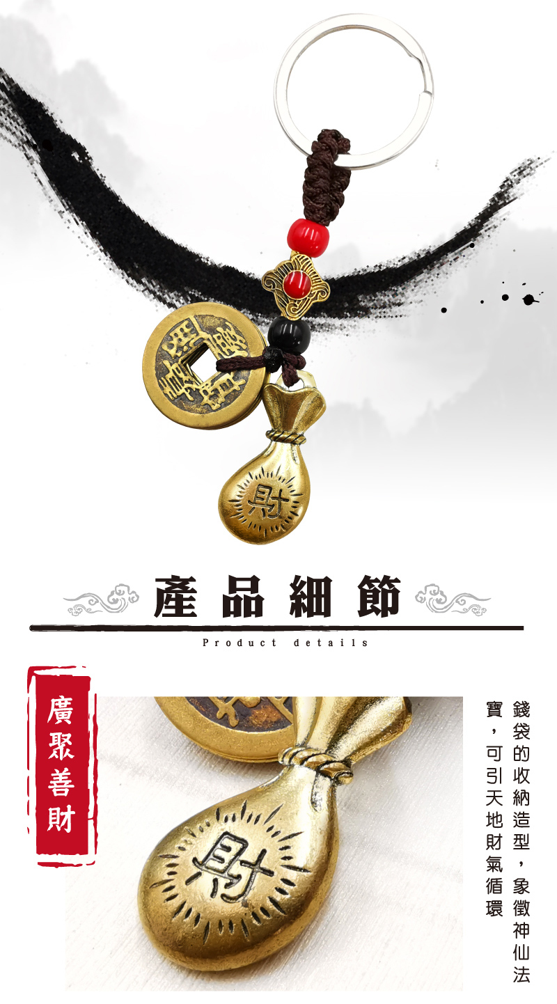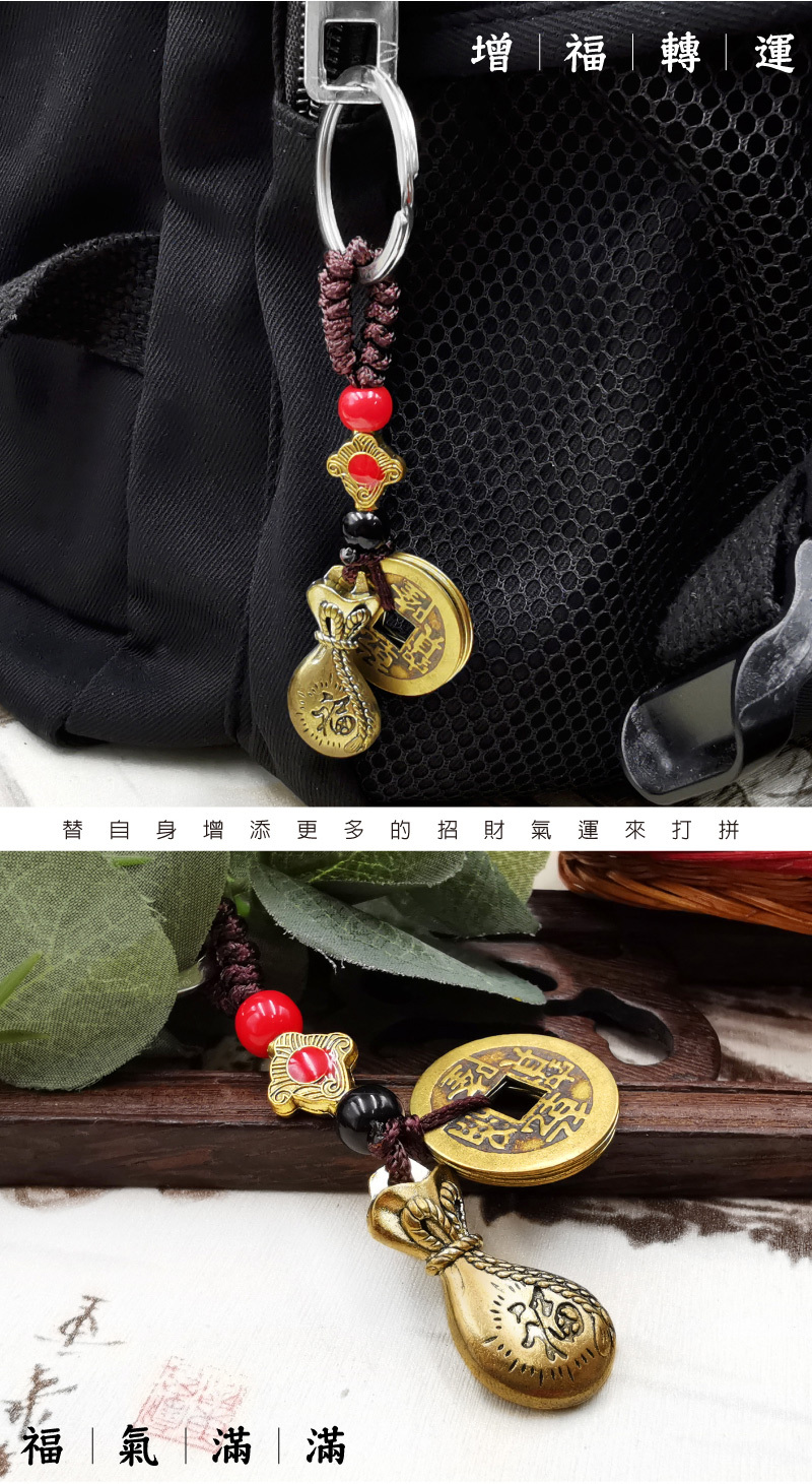 【財神小舖】財福錢袋-招財五帝錢鑰匙圈 (含開光)
