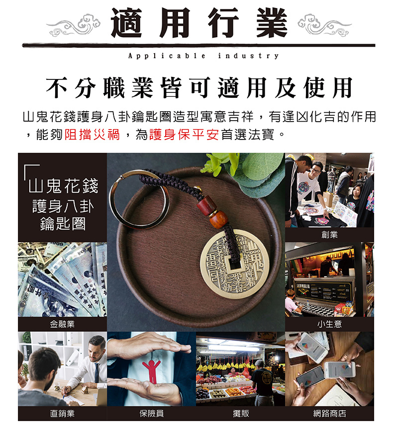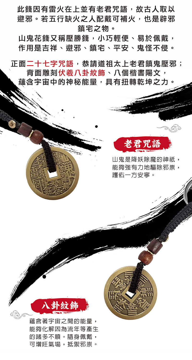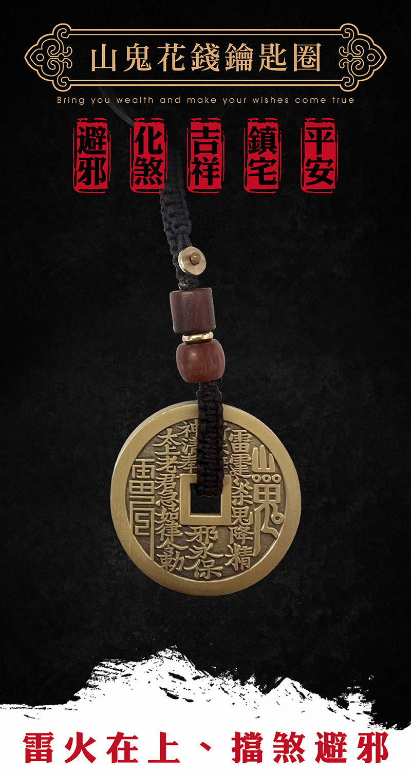 【財神小舖】山鬼花錢-護身八卦鑰匙圈(含開光)