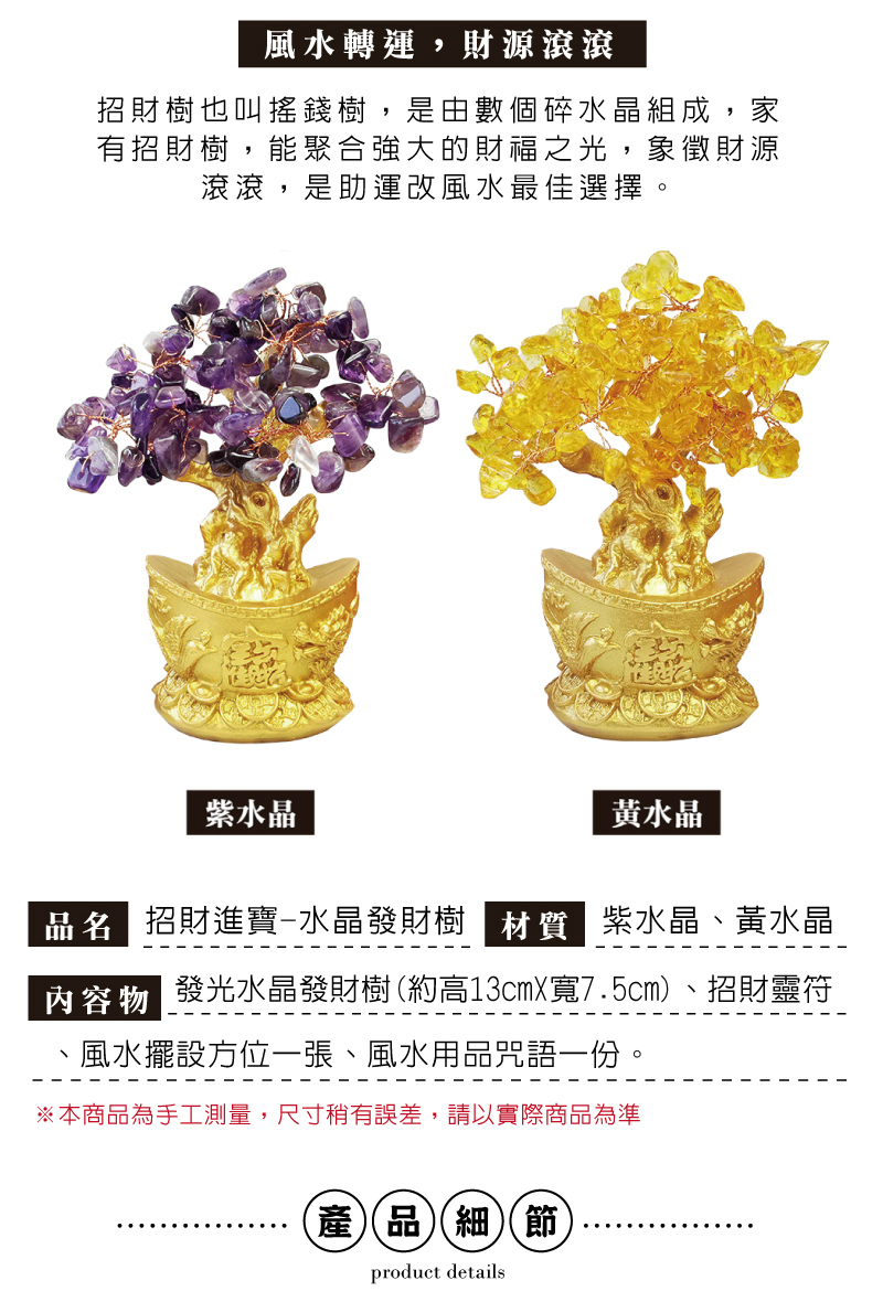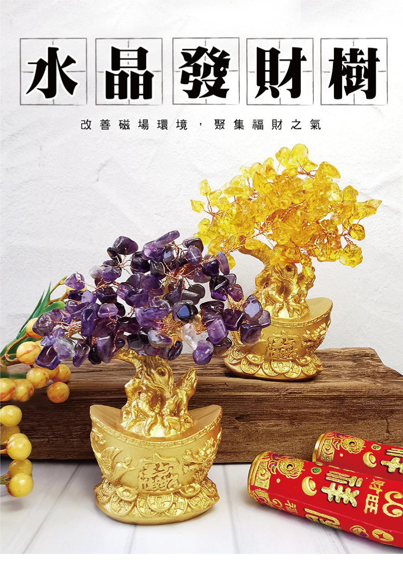 【財神小舖】招財進寶 - 水晶發財樹 (兩款可選) (含開光)