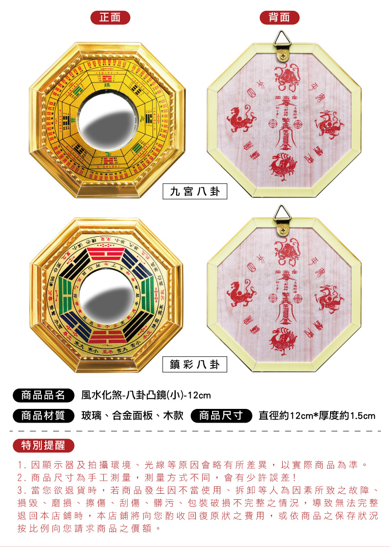 【財神小舖】風水化煞-八卦凸鏡(小)-12cm-2款任選 (含開光)