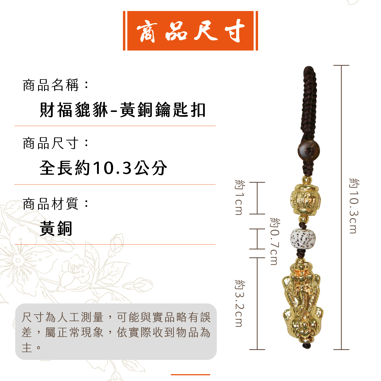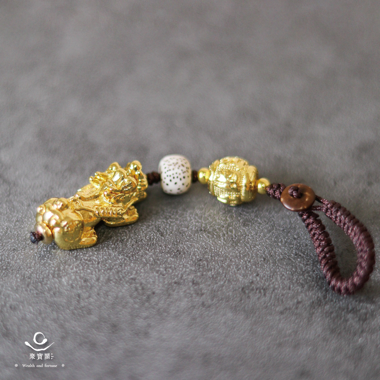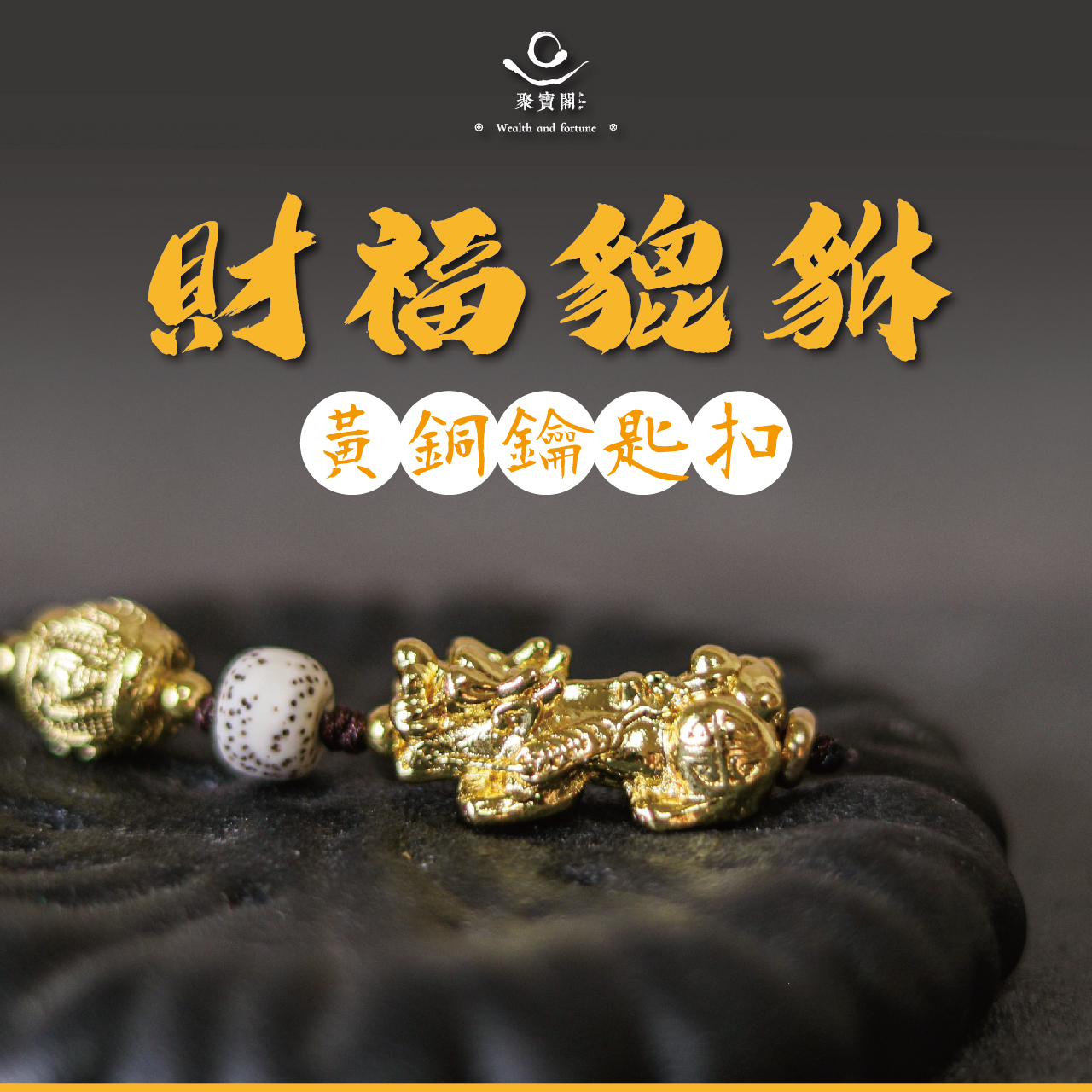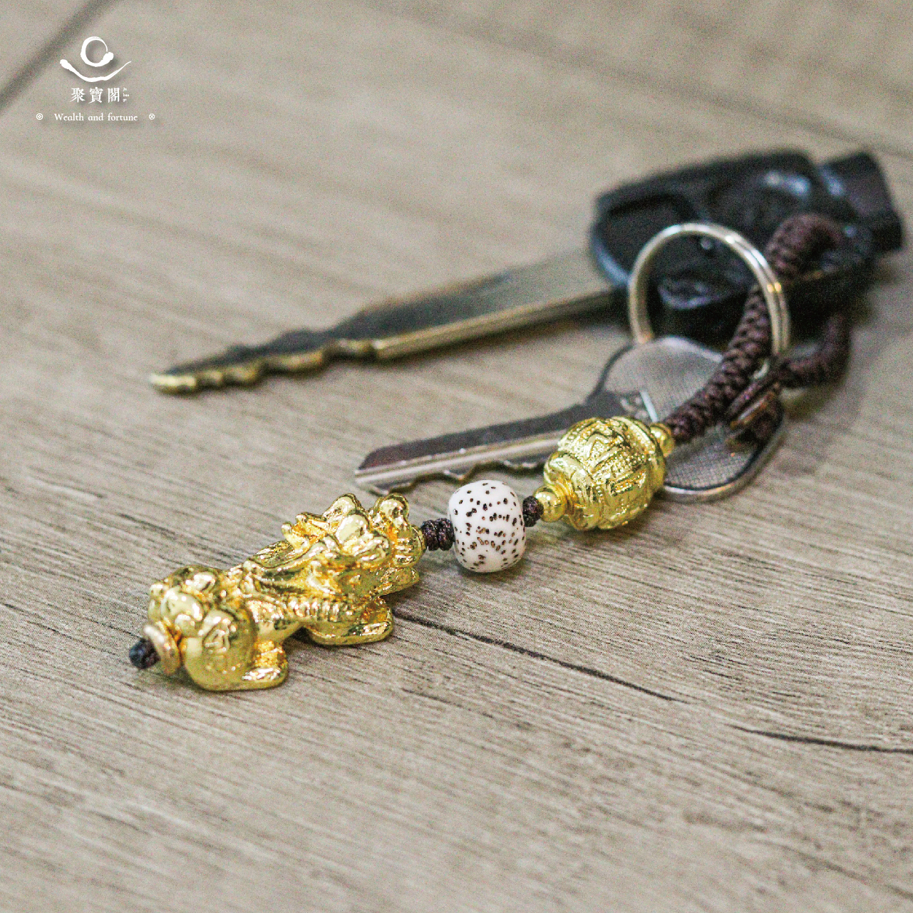 財福貔貅黃銅鑰匙扣|招財聚財|事業順利|招財納福|鑰匙圈|過爐加持【聚寶閣】