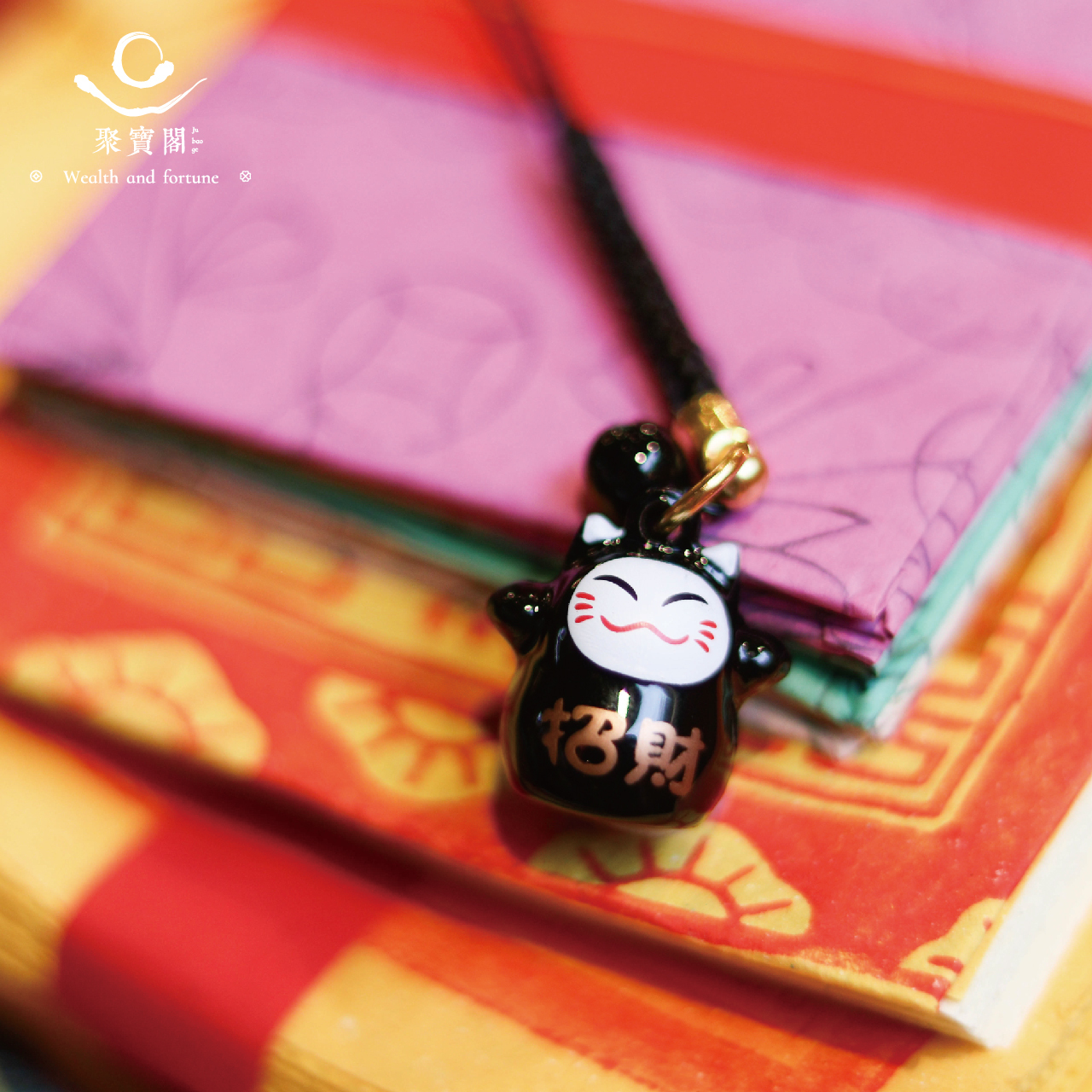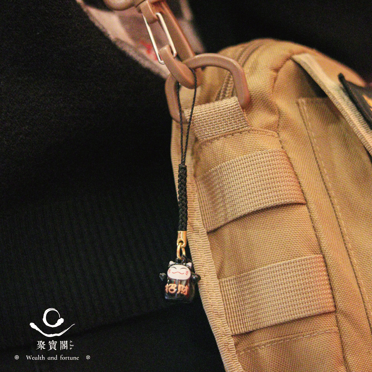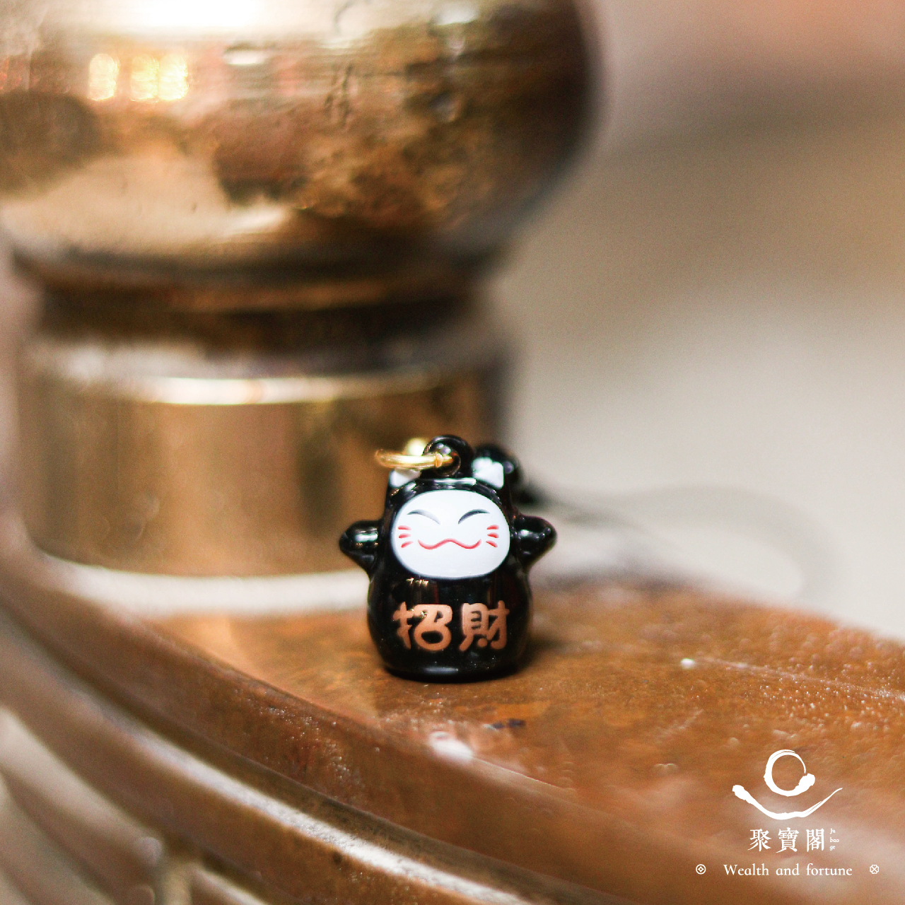 黑色招財貓鈴鐺吊飾-招財進寶|掛件|好運|招財|吉祥物|避邪消災【聚寶閣】