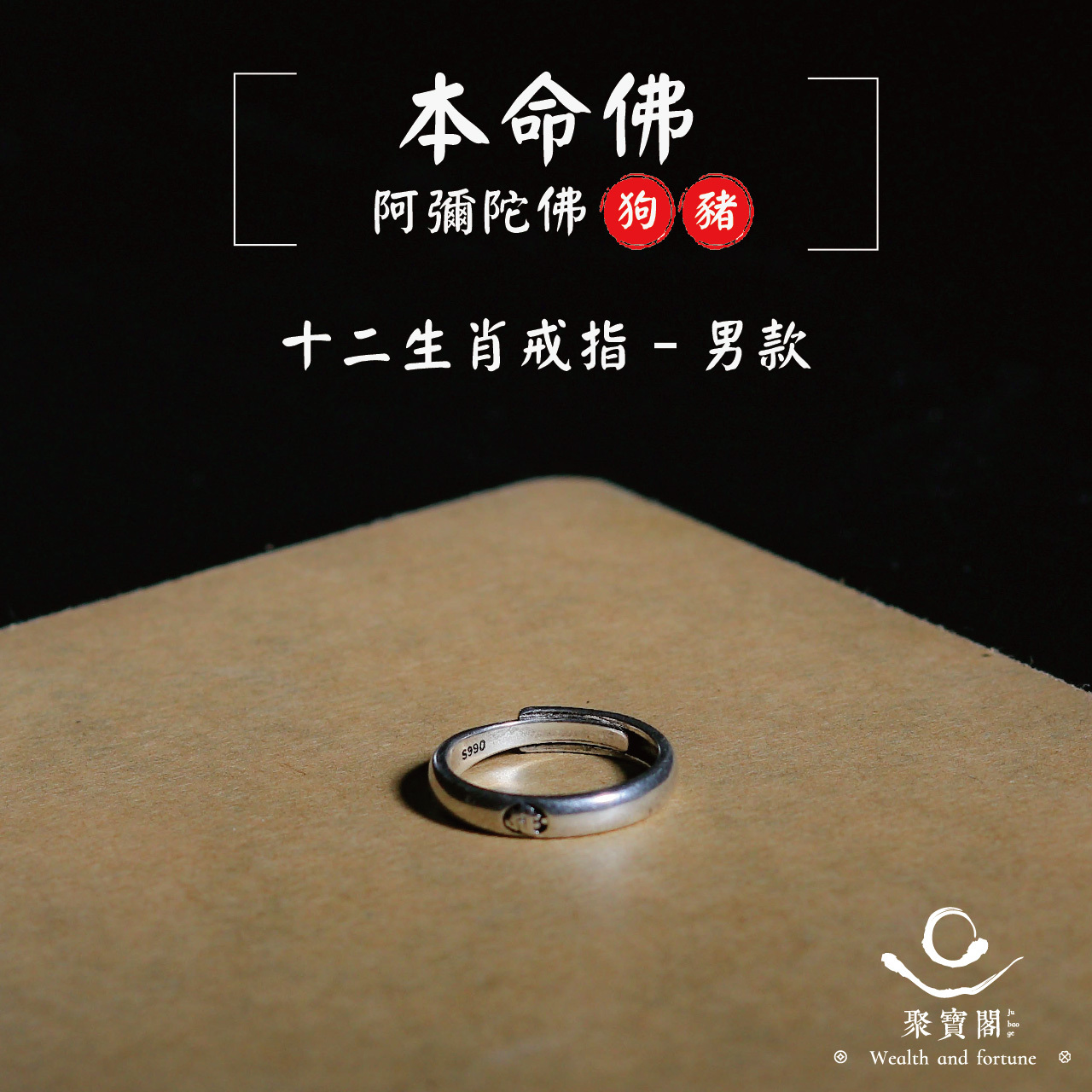 本命佛十二生肖戒指-狗豬-男款|通天智慧|擺脫煩惱|逢凶化吉(含過爐加持)【聚寶閣】