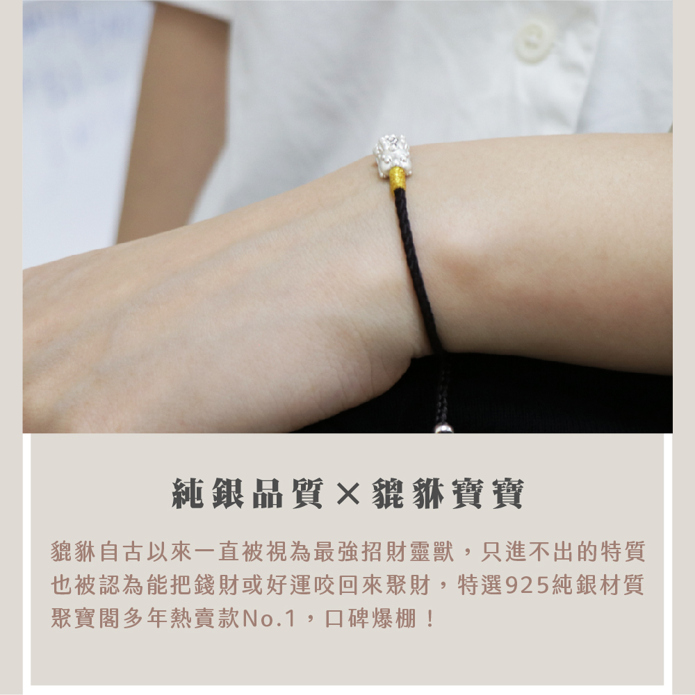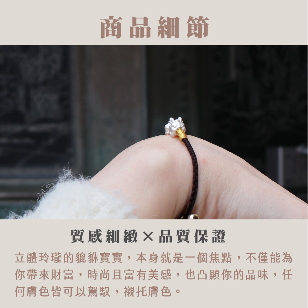純銀貔貅寶寶開運手鍊-深棕色|五色可選|過爐加持|招財必備【聚寶閣】