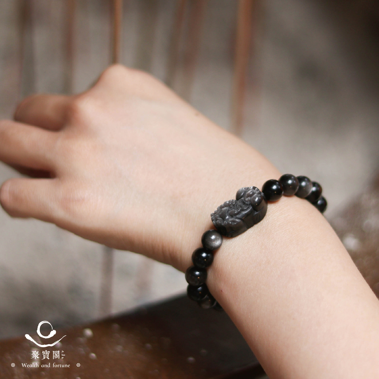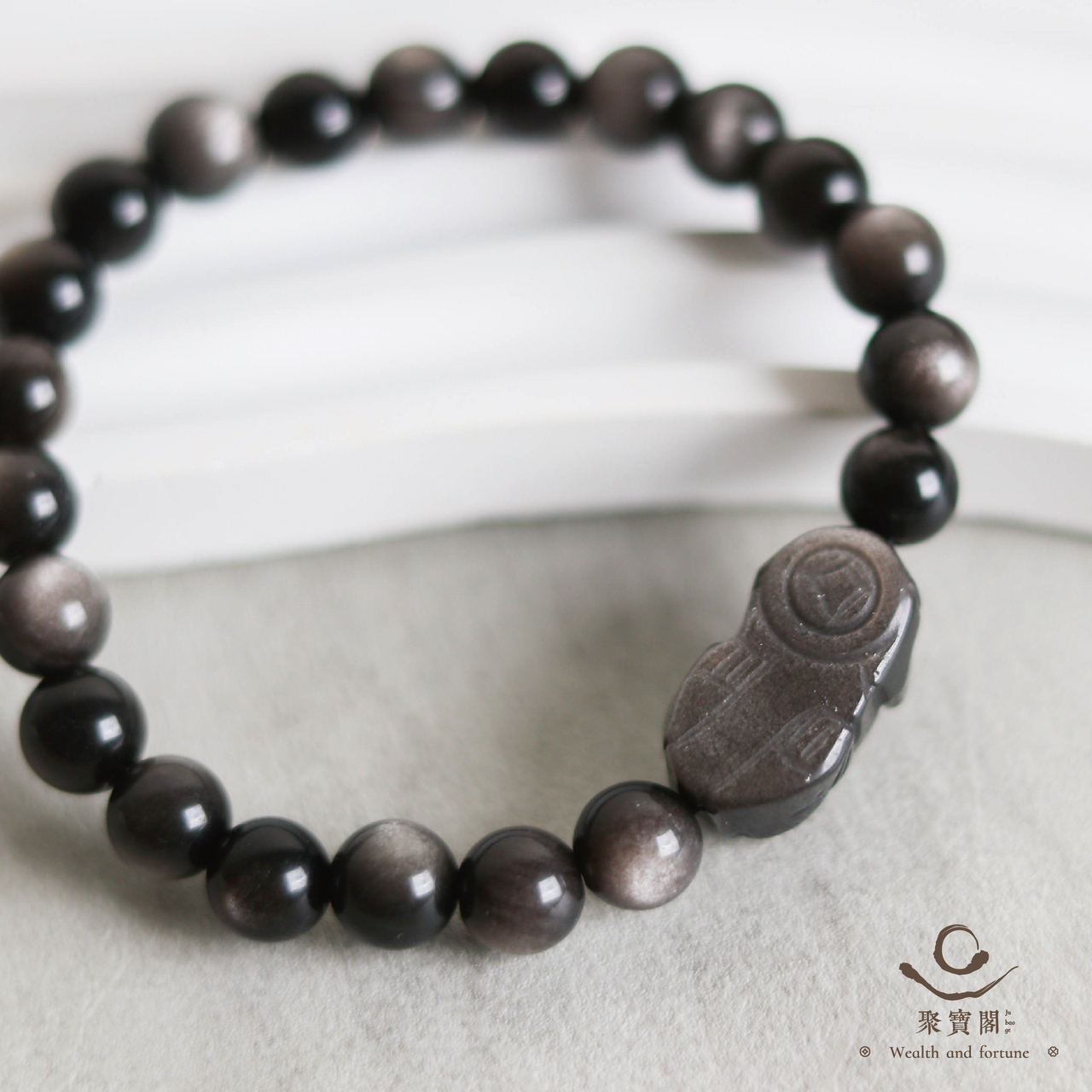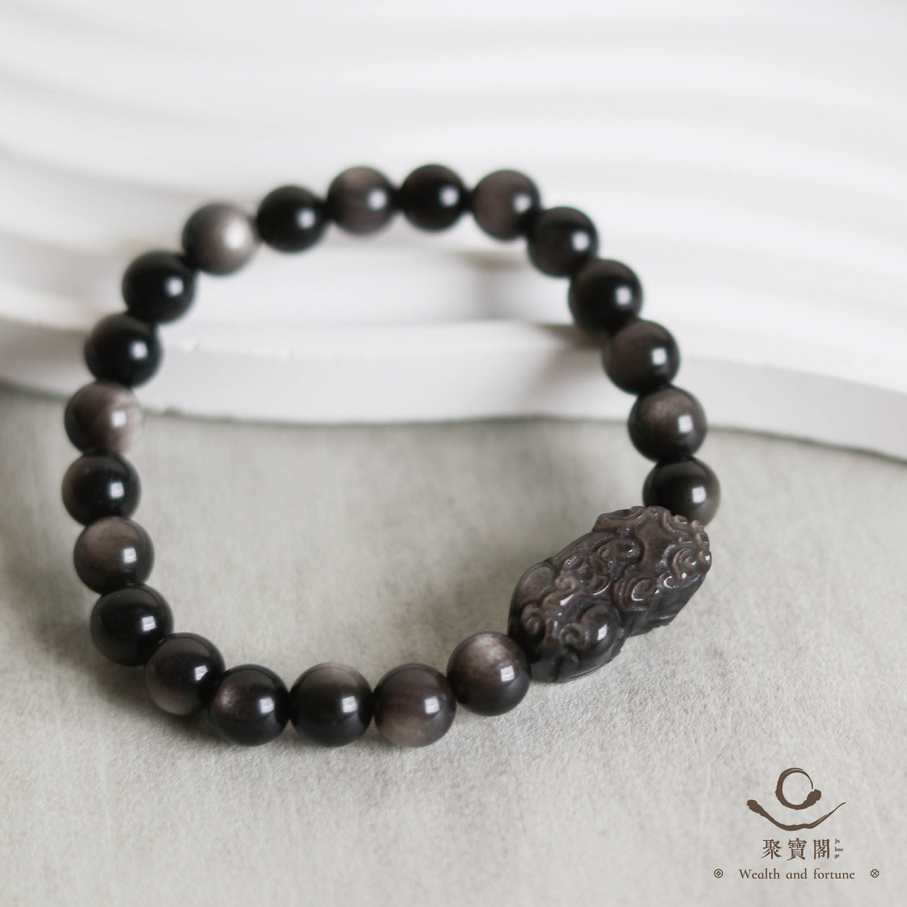 招財銀曜石貔貅手鍊|擋煞|避邪|招財聚氣|擋負能量(含過爐)8MM【聚寶閣】