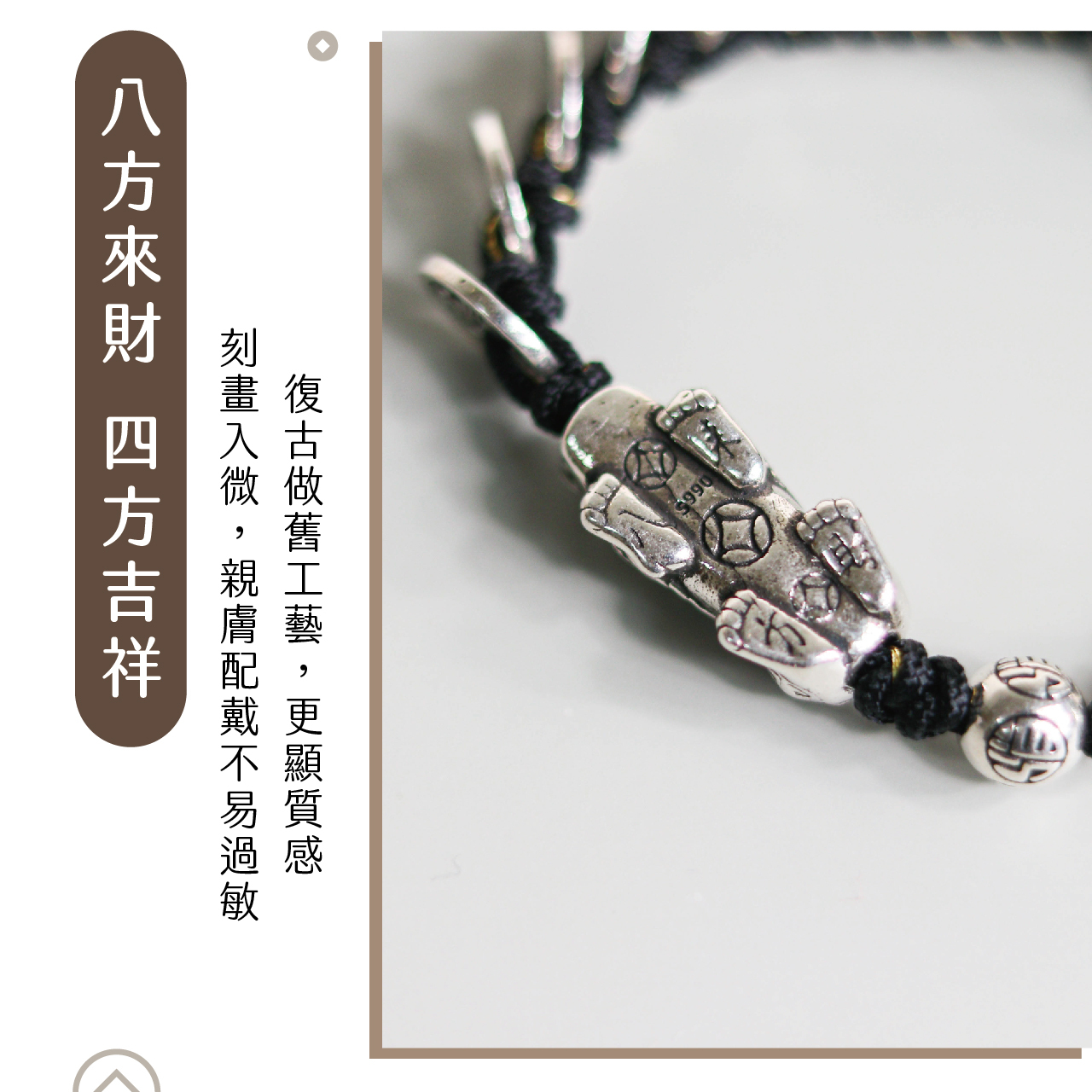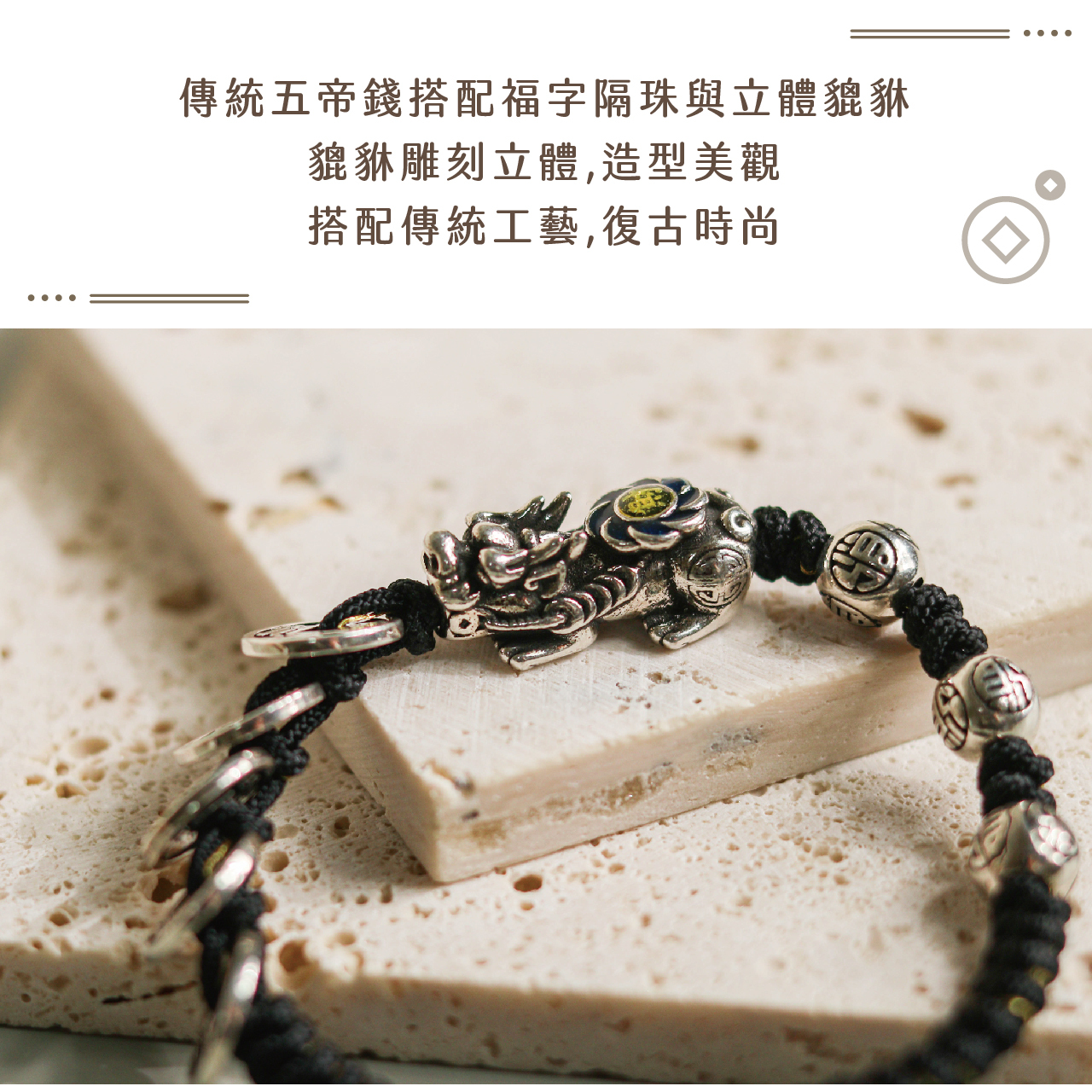 傳統五帝錢搭配福字隔珠與立體貔貅