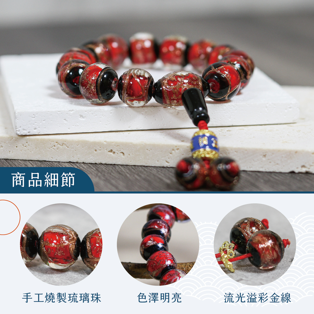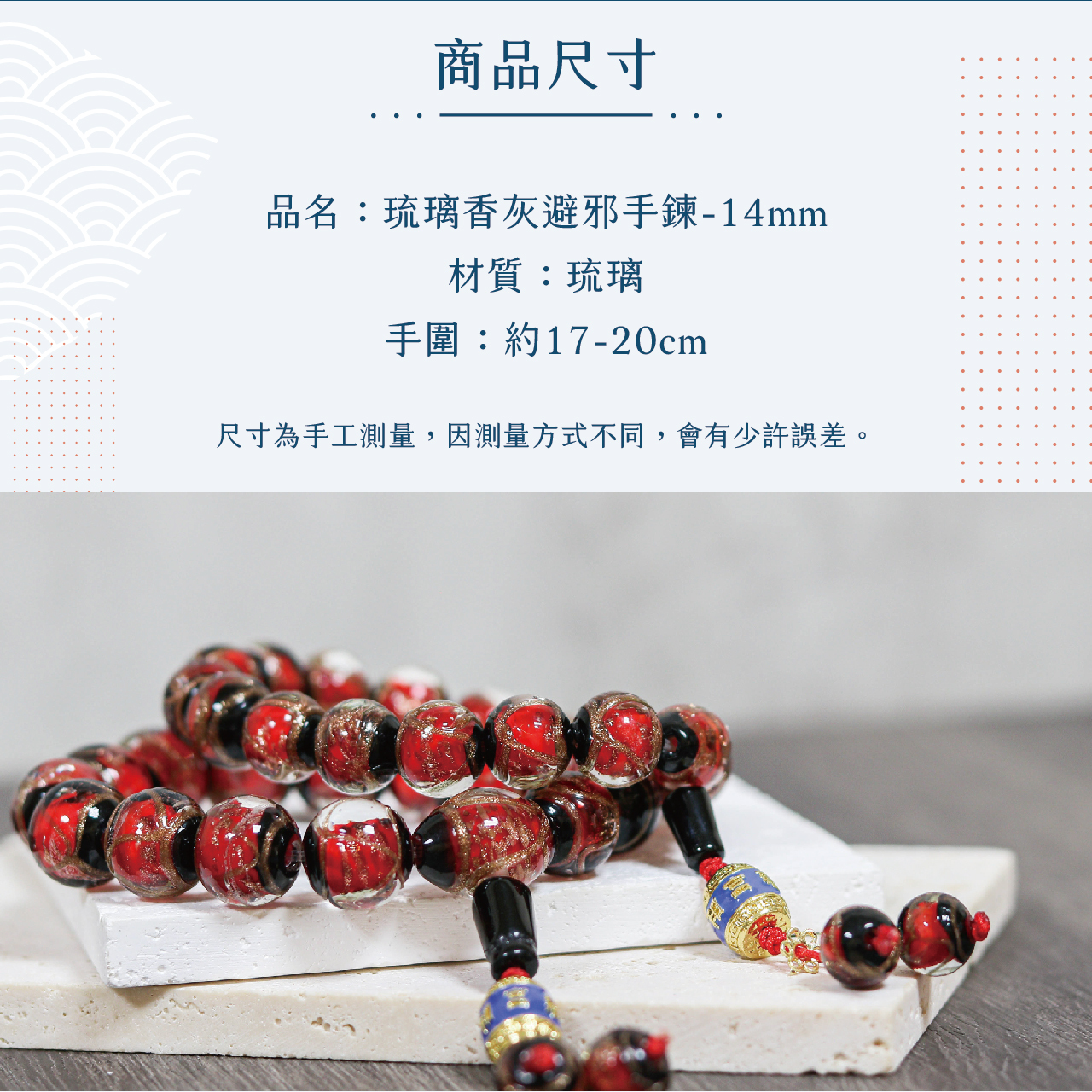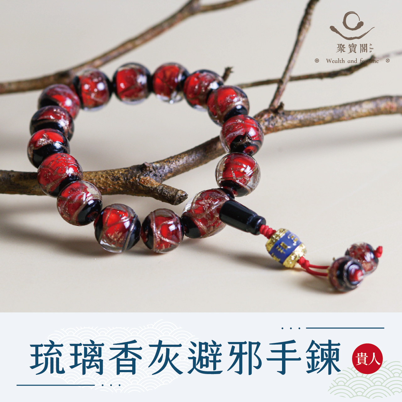 琉璃香灰避邪手鍊-紅14mm|貴人|姻緣|手工|庇護|緩解情緒|過爐加持【聚寶閣】