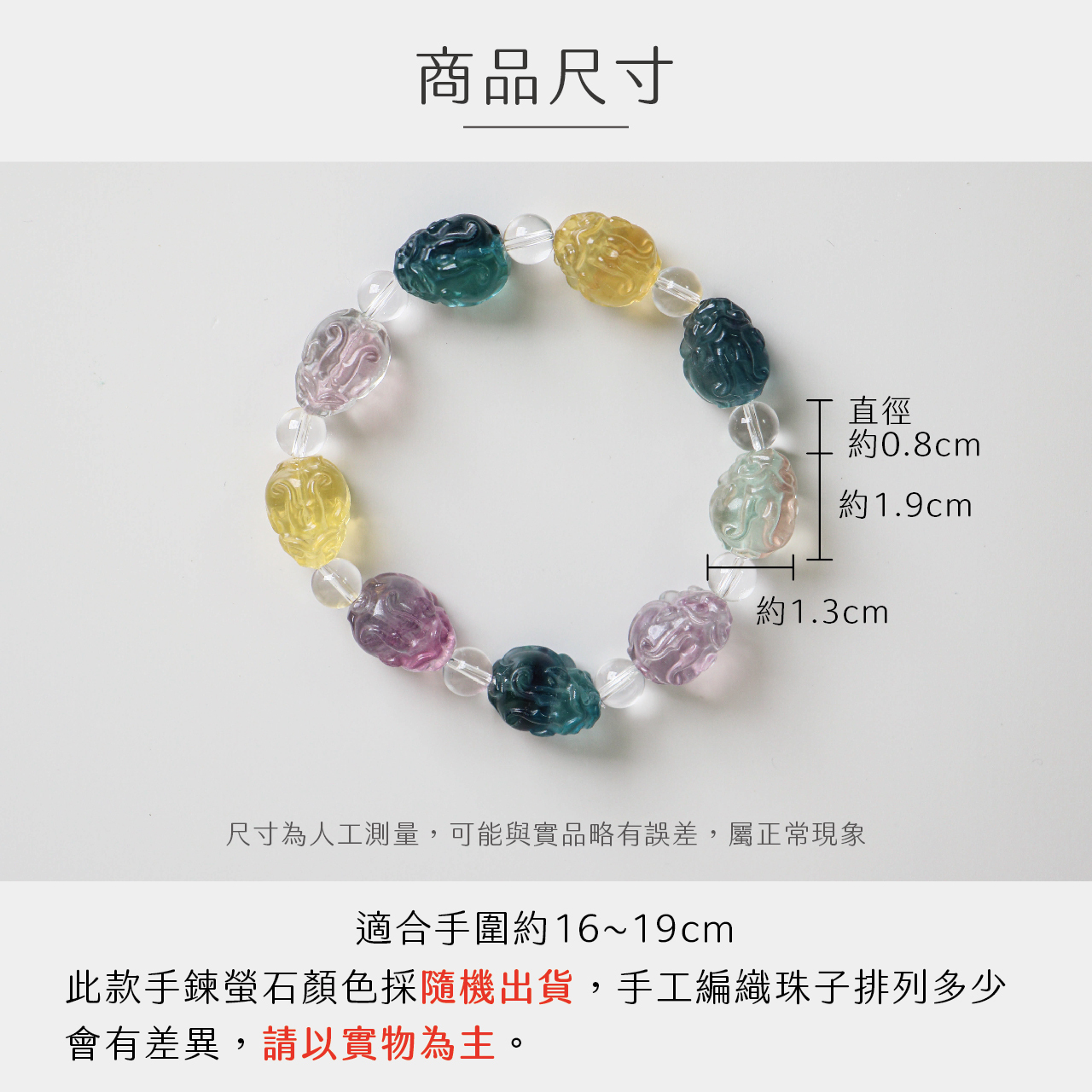 ※螢石顏色為隨機出貨,手工編織珠子排列多少會有差異,請以實物為主。