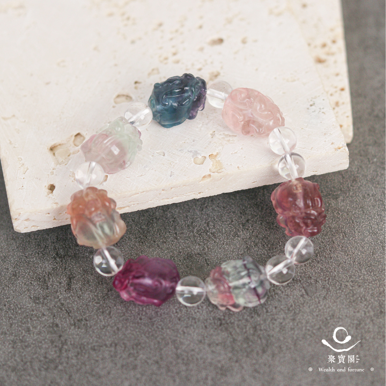 天然螢石貔貅手鍊|平衡能量|招財擋煞|緩解壓力|防小人【聚寶閣】