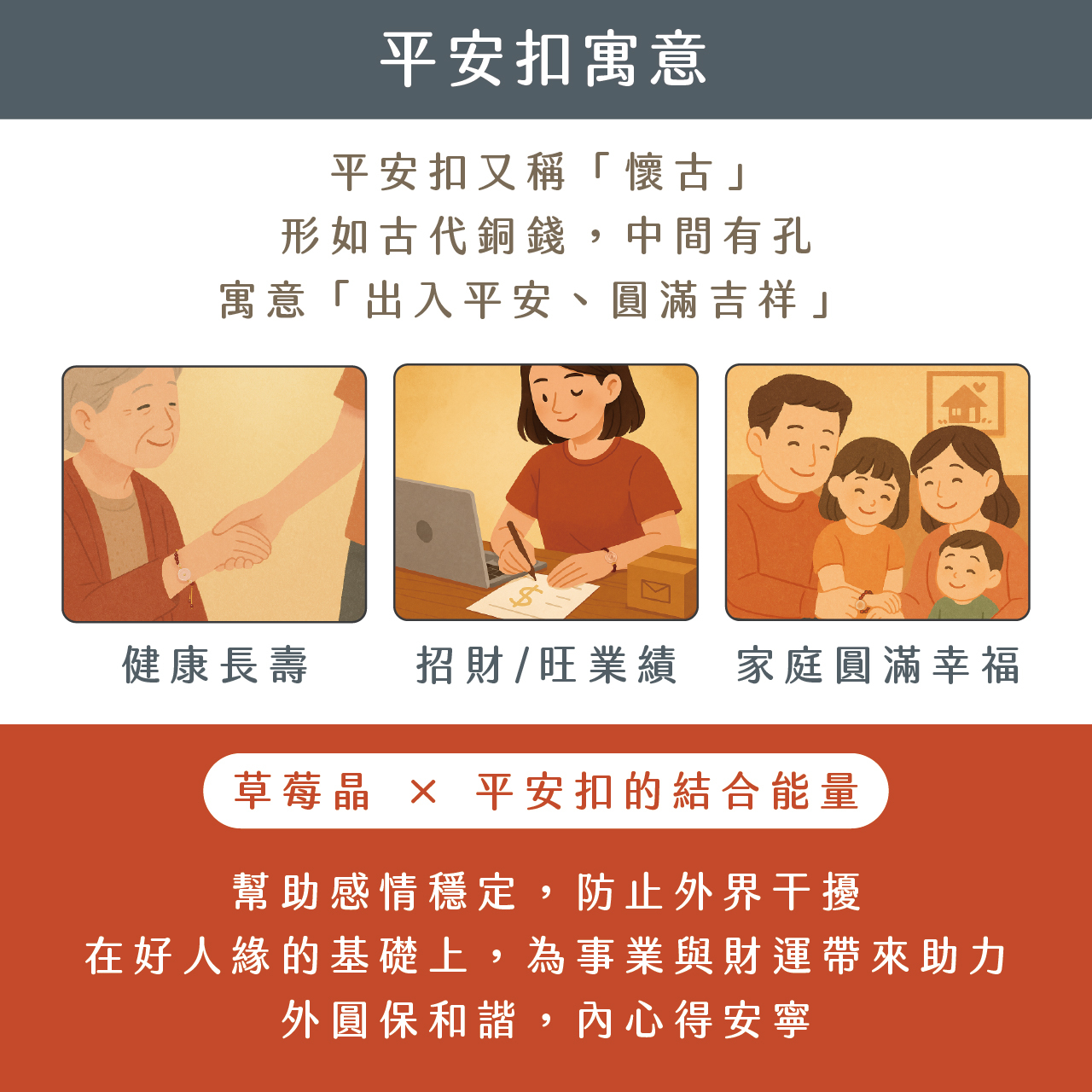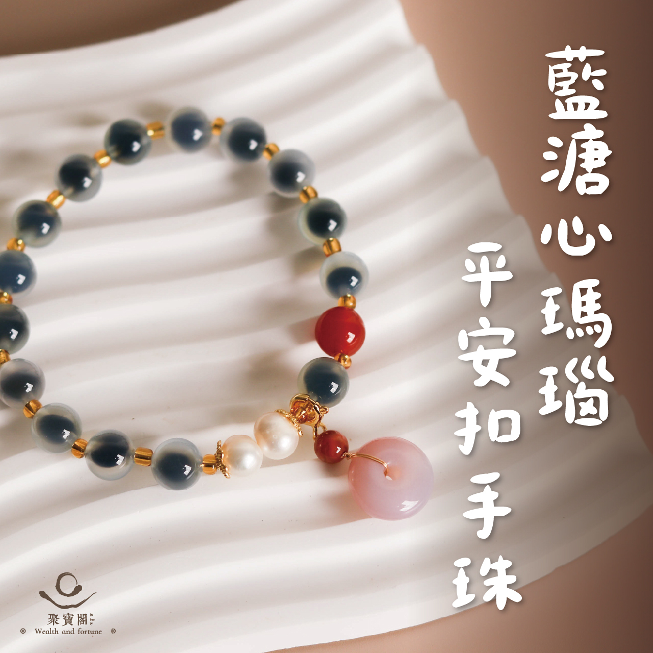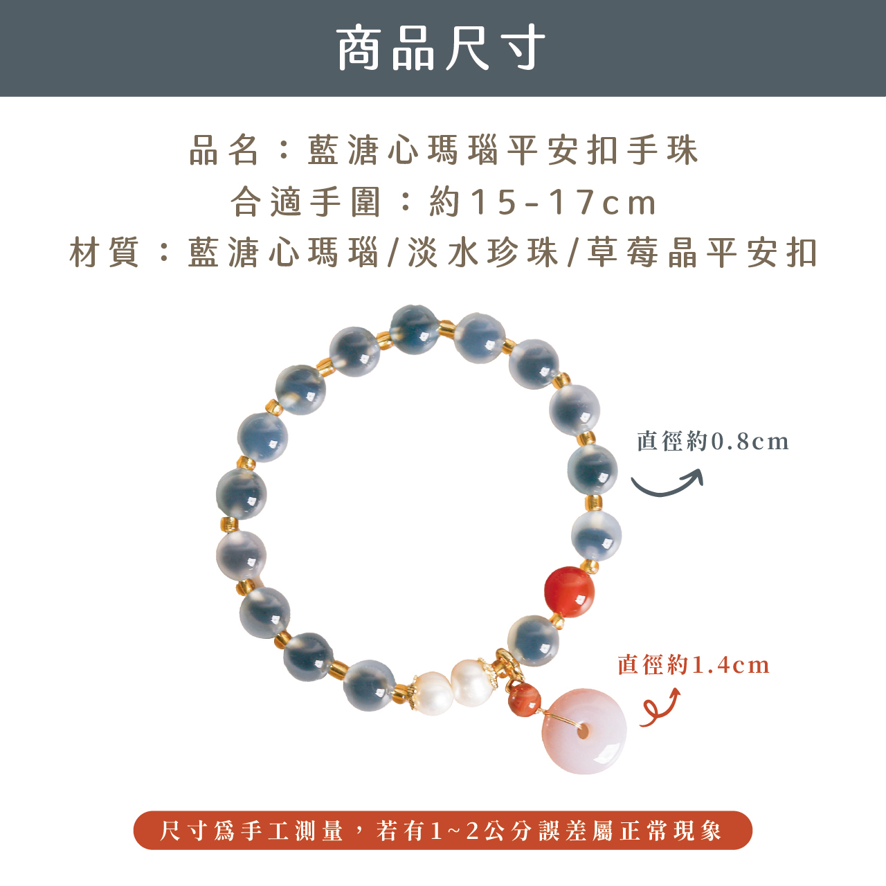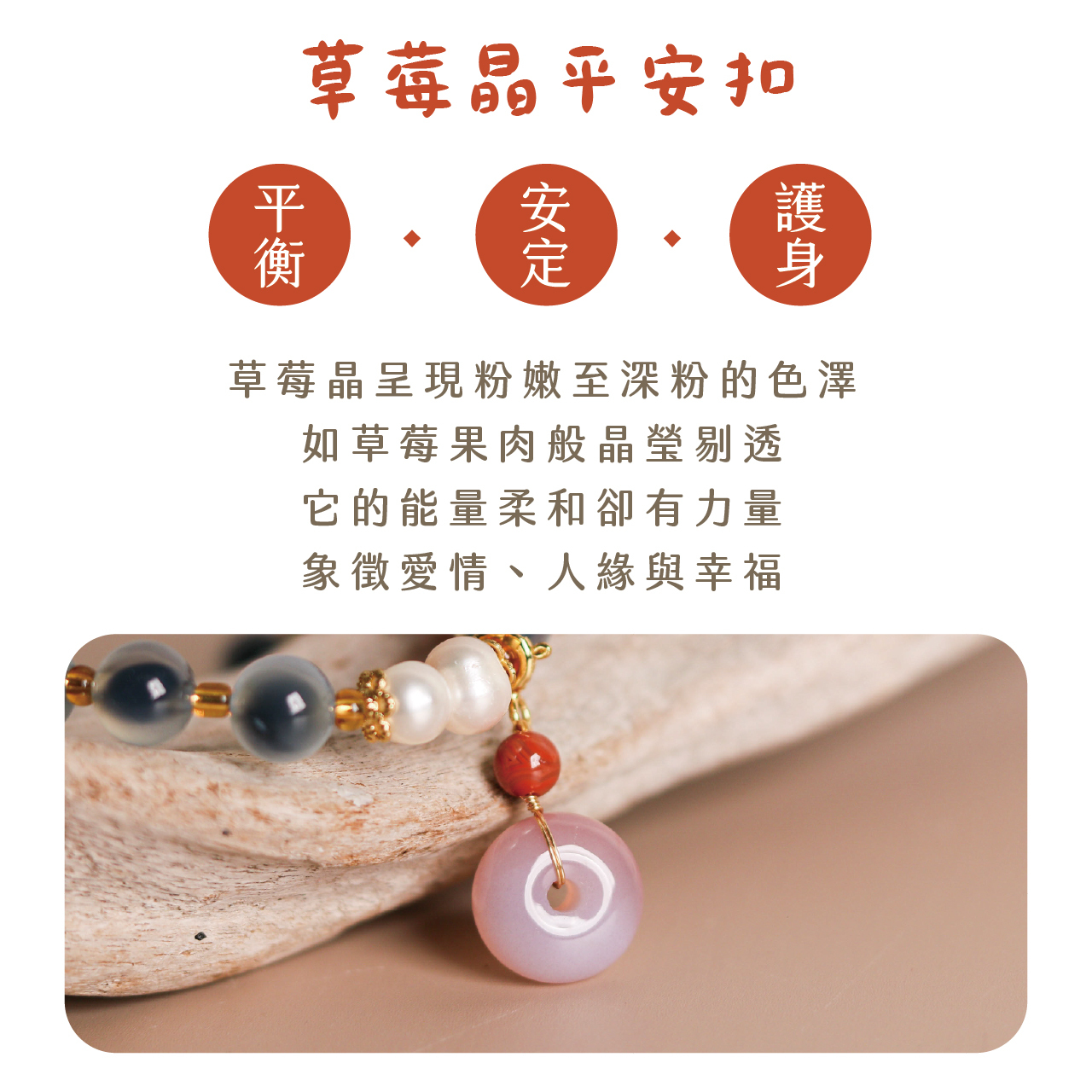| 材質 | 藍溏心瑪瑙/淡水珍珠/草莓晶平安扣 |