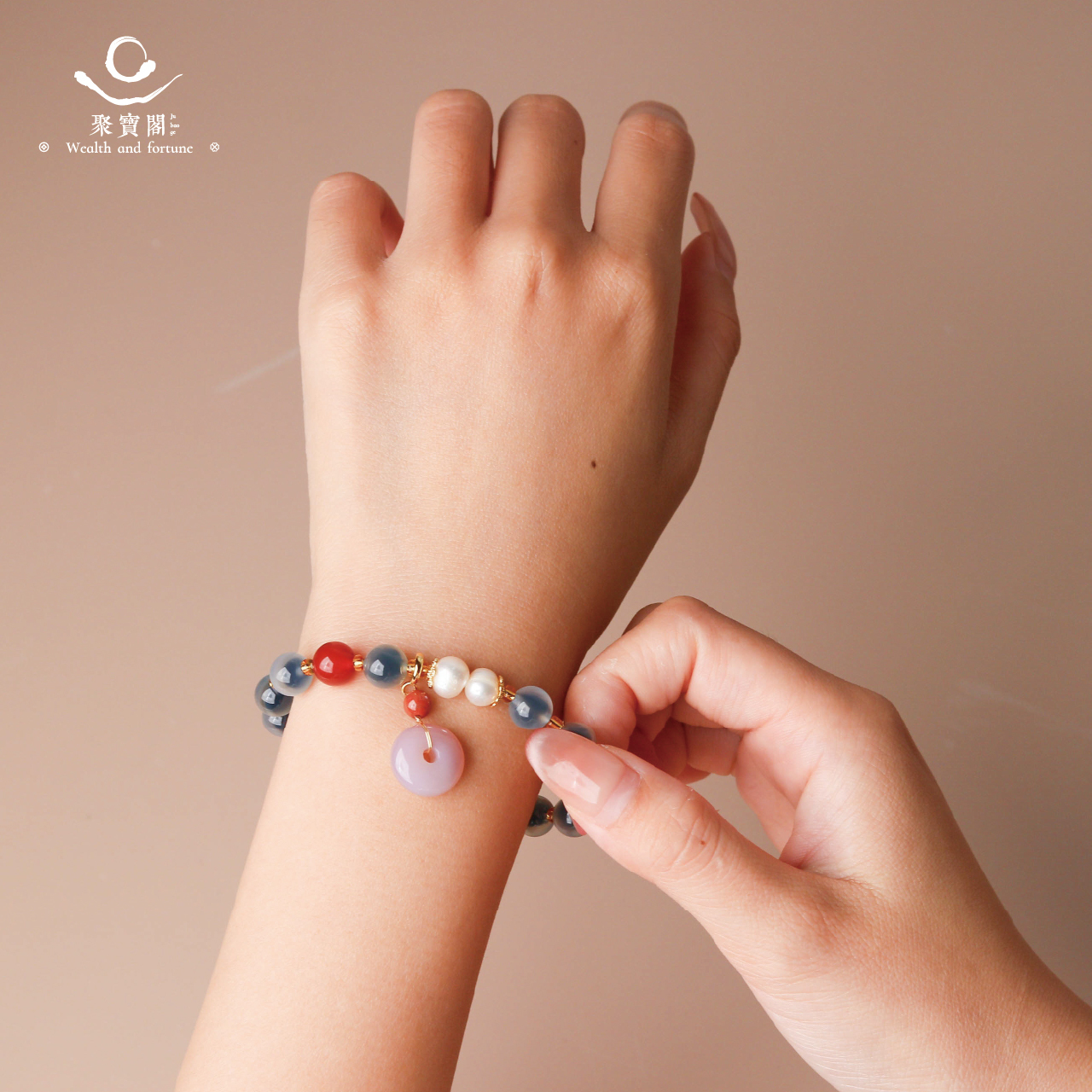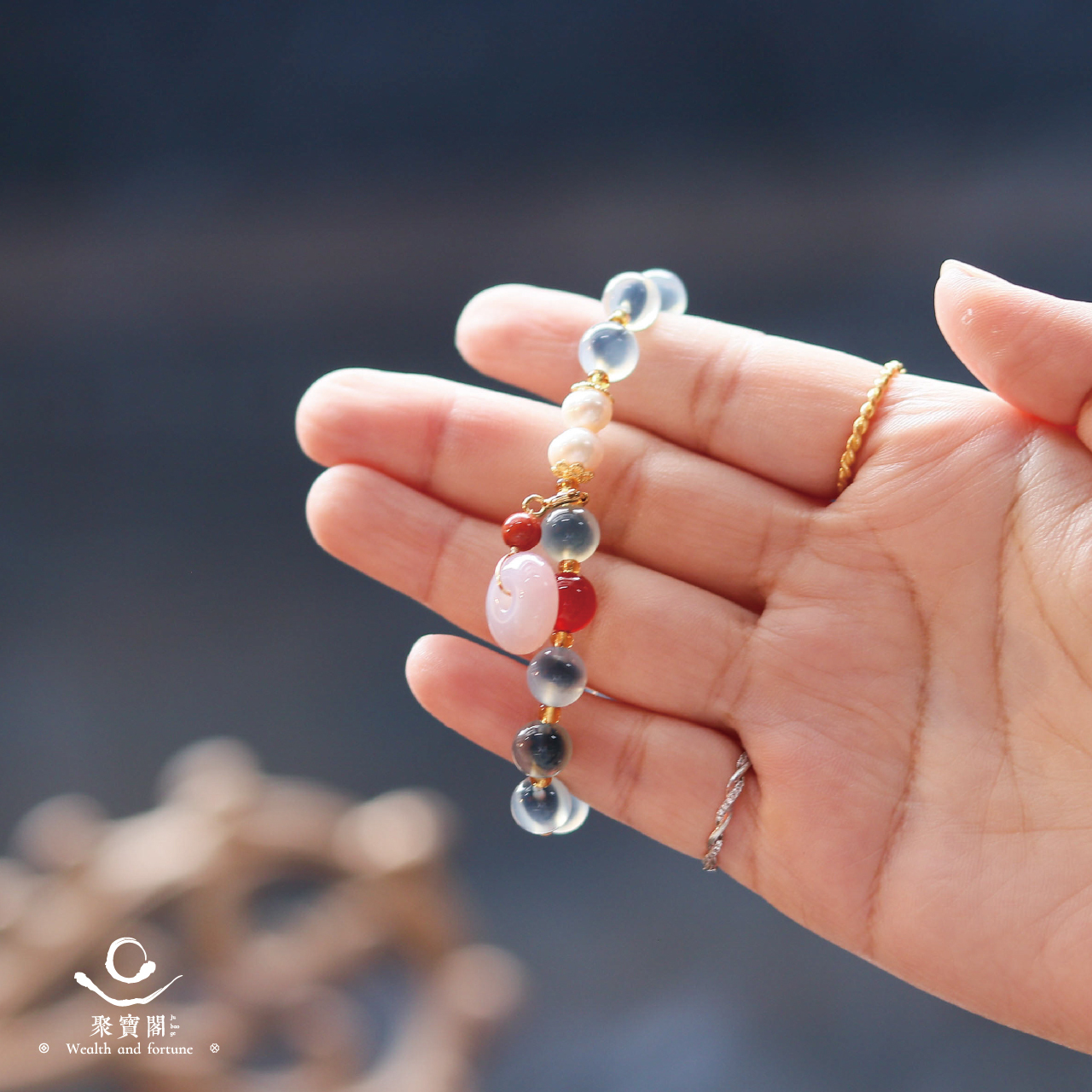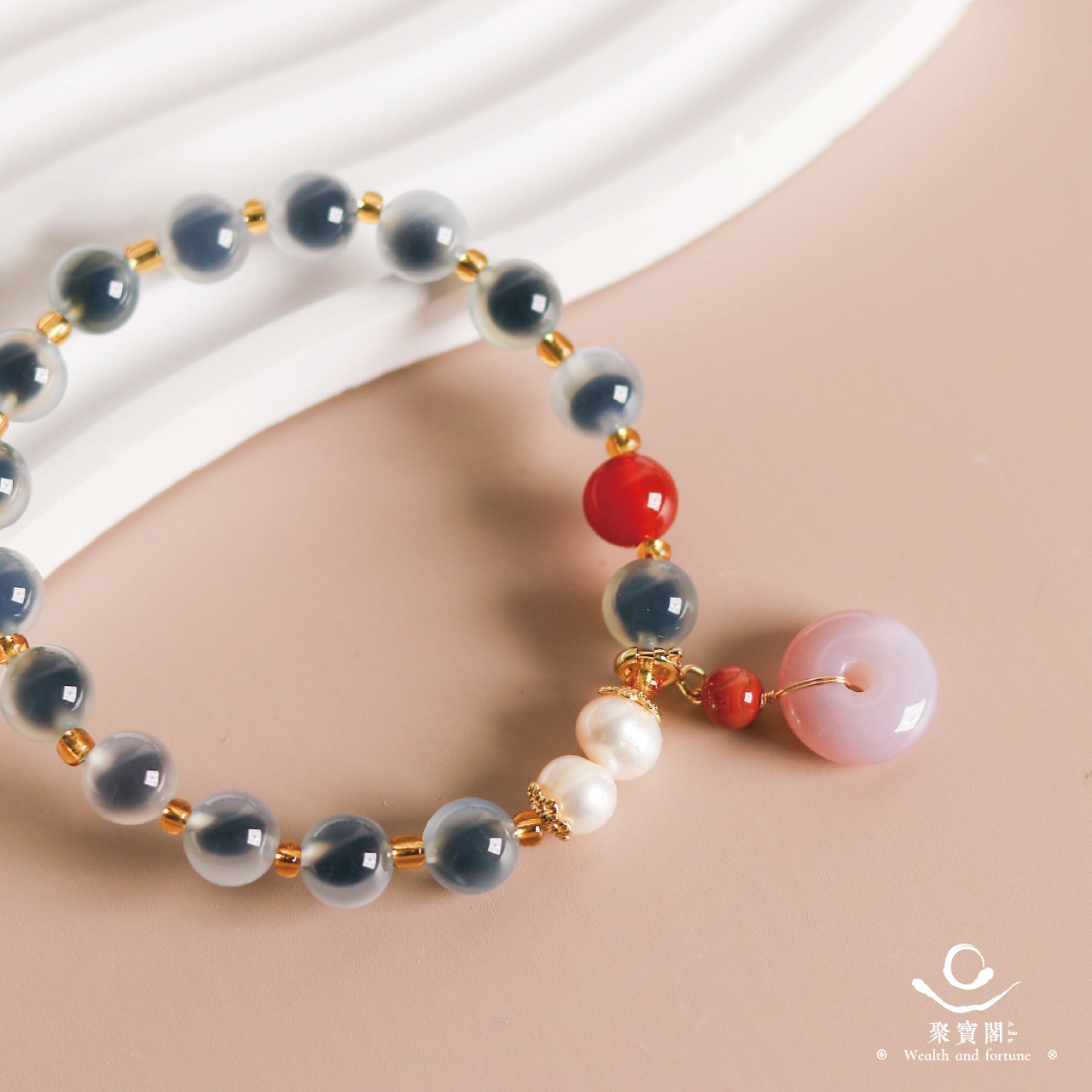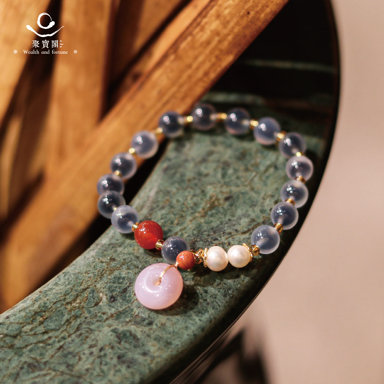| 材質 | 藍溏心瑪瑙/淡水珍珠/草莓晶平安扣 |