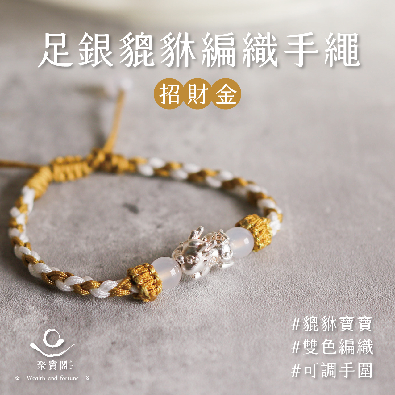 招財金-足銀貔貅編織手繩|招財|開運|平安|福氣|可調手圍【聚寶閣】