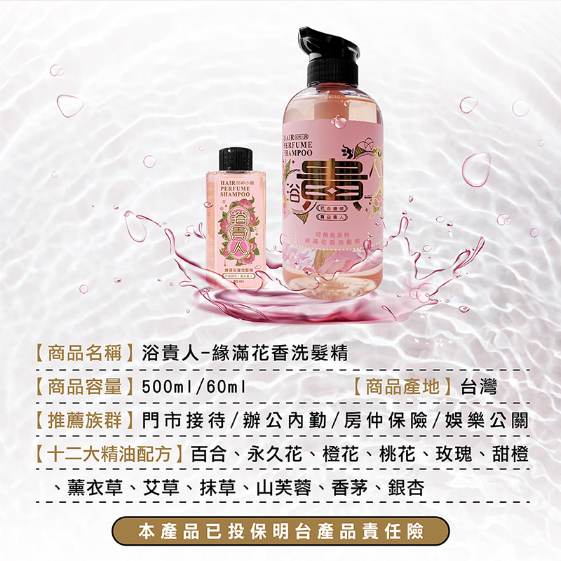 【財神小舖】浴貴人-緣滿花香洗髮精500ml (廠商直出、不參加免運及滿額贈優惠)