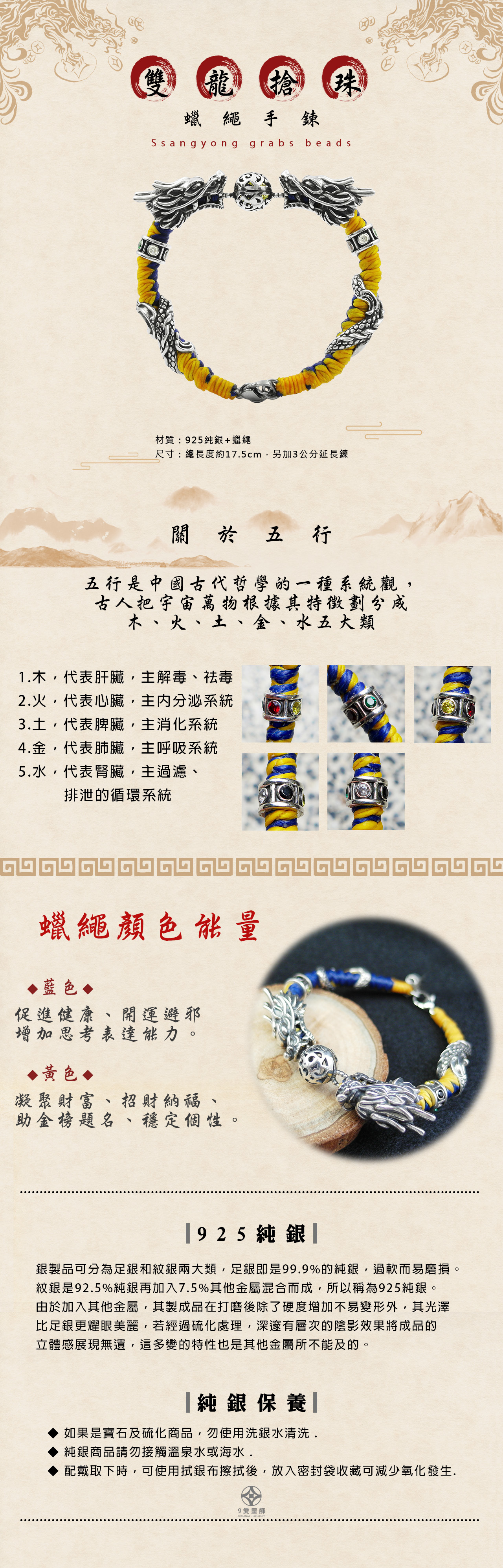 五行包鑽雙龍搶珠手鍊-黃