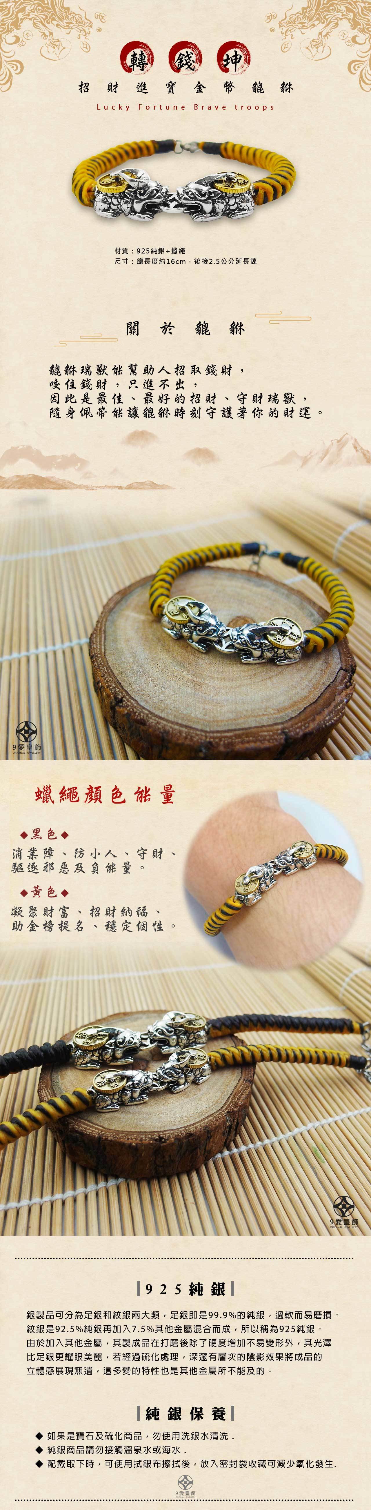 轉錢坤招財進寶金幣貔貅手鍊-小