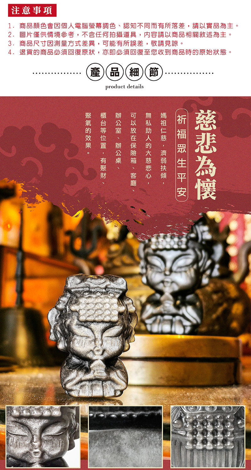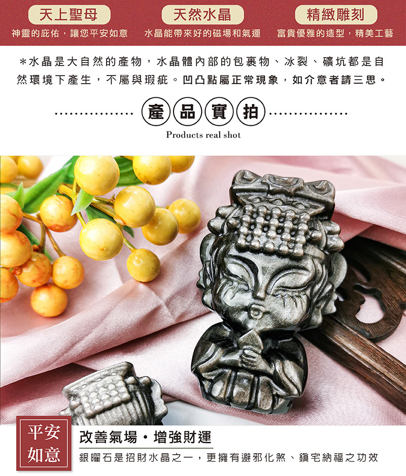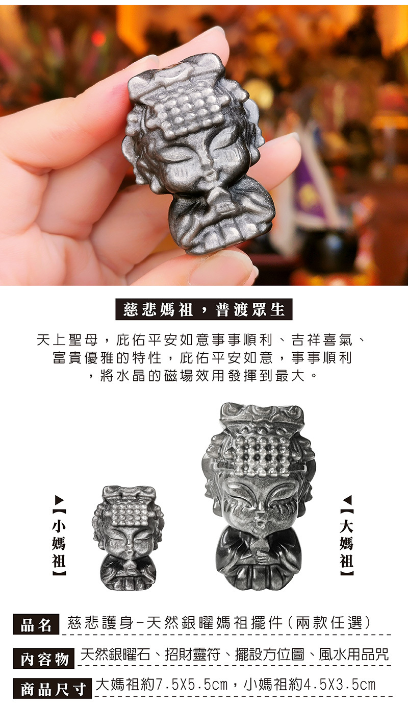 【財神小舖】慈悲護身-天然銀曜媽祖擺件-2款任選 (含開光)