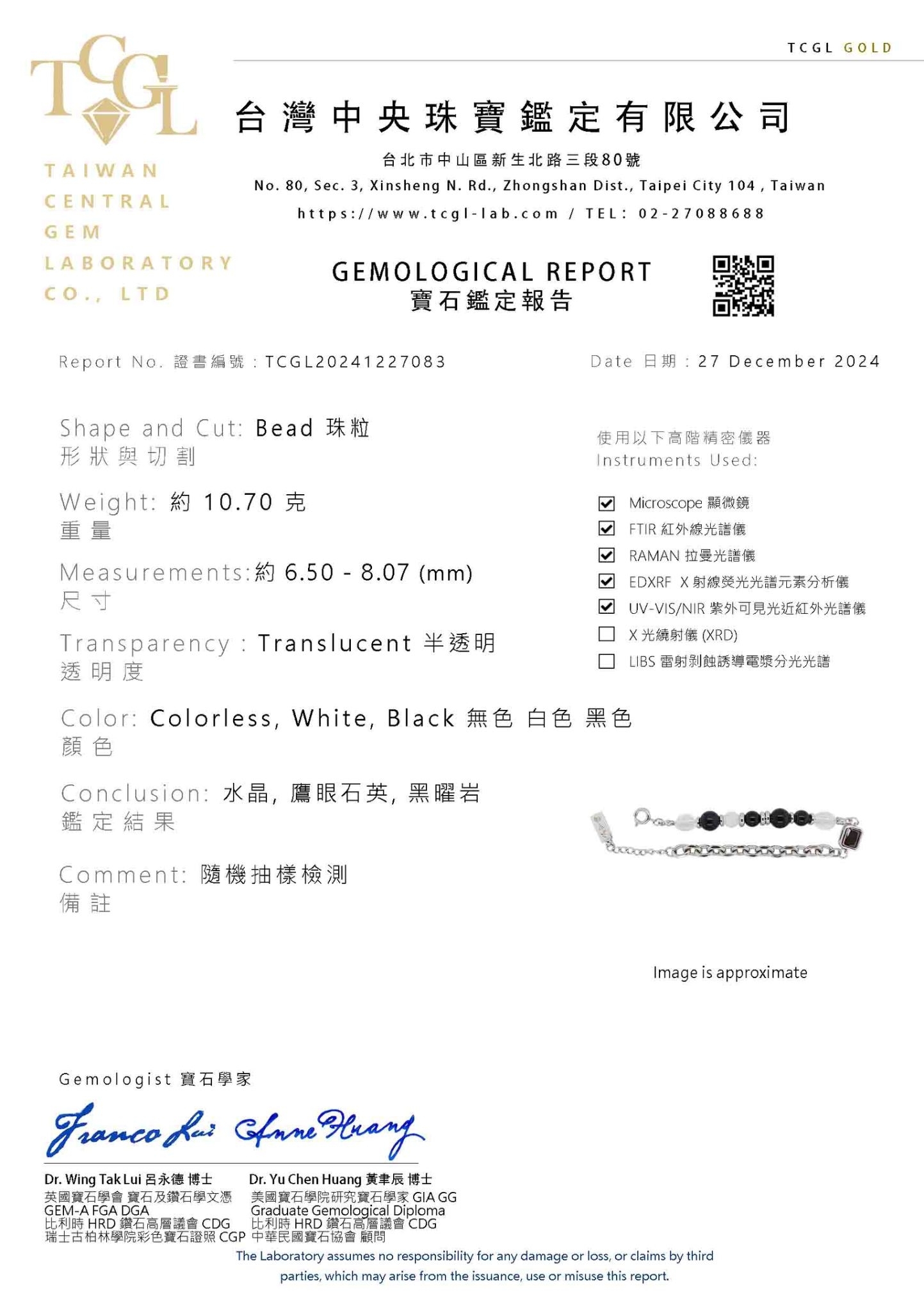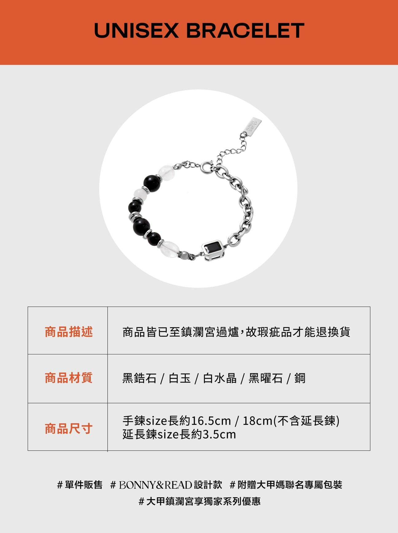 商品材質:黑鋯石 / 白玉 / 白水晶 / 黑曜石 / 鋼