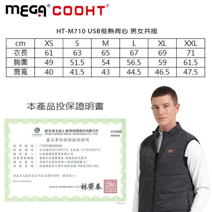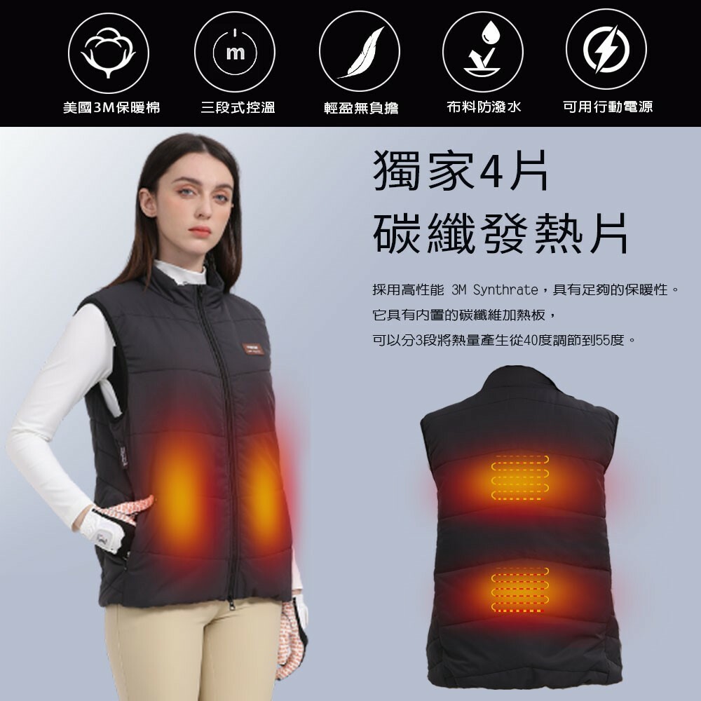 【MEGA COOHT】3M科技USB發熱背心-輕量PRO 男女共版 (贈6500mAh行動電源)(廠商直出)