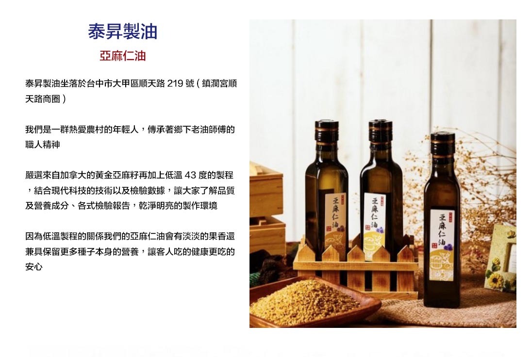 【泰昇製油】冷壓黃金亞麻仁油_F