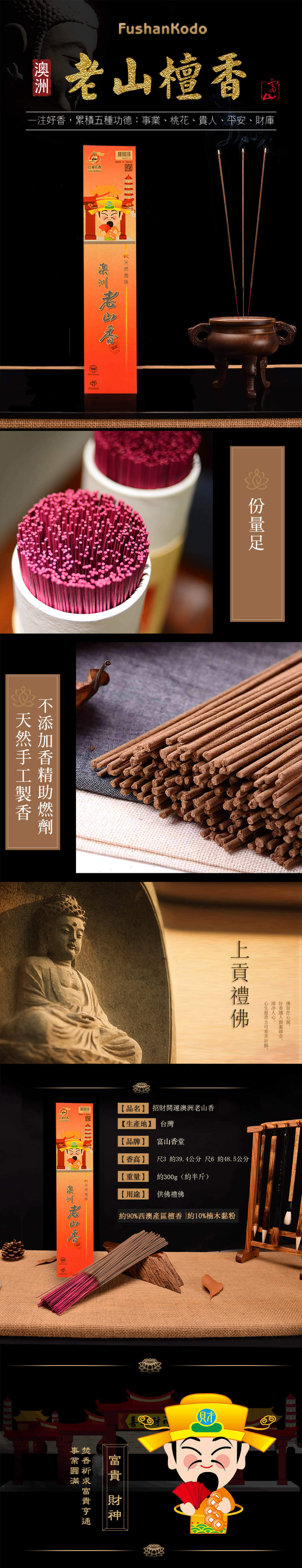 富山香堂-招財開運四大財神老山檀香拜拜香/貴人財神(黃)-立香_T