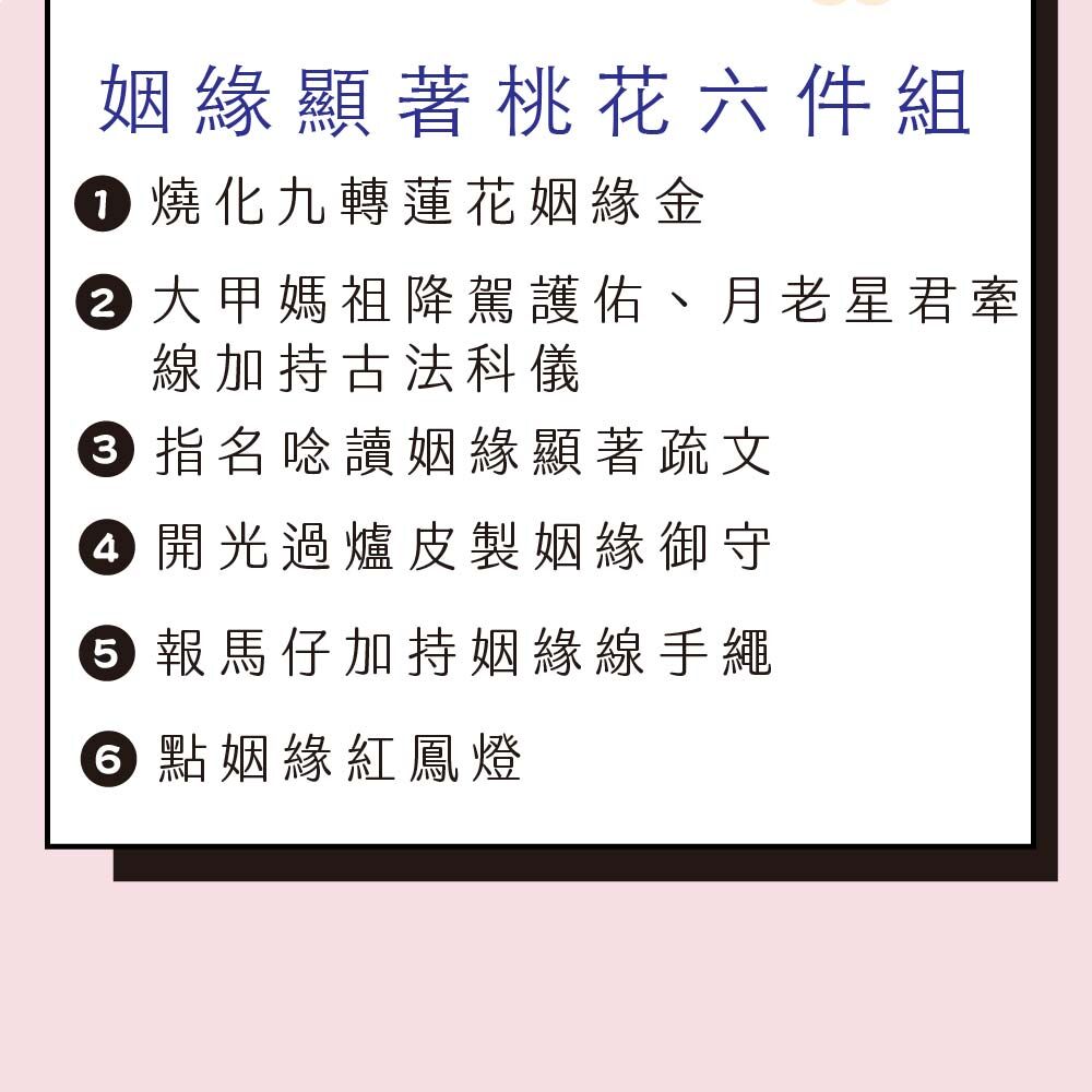 【姻緣顯著招桃花六件組】包含: