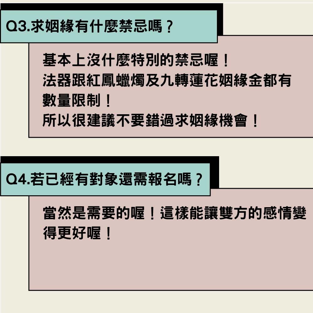 此組合於國曆1月19日(農曆初一)舉辦月老誕辰求姻緣大法會